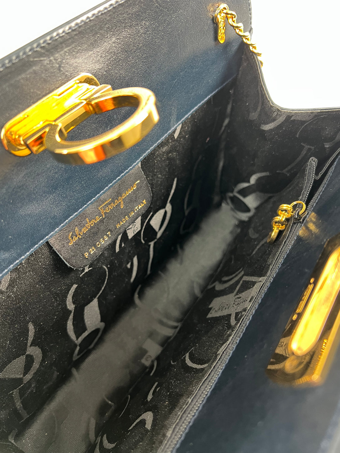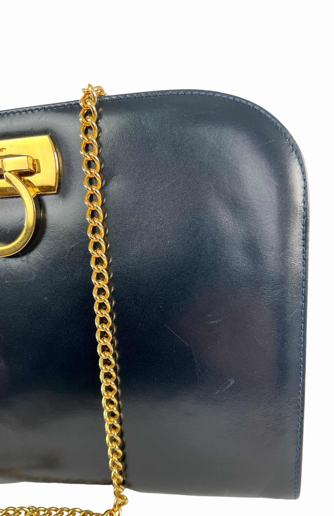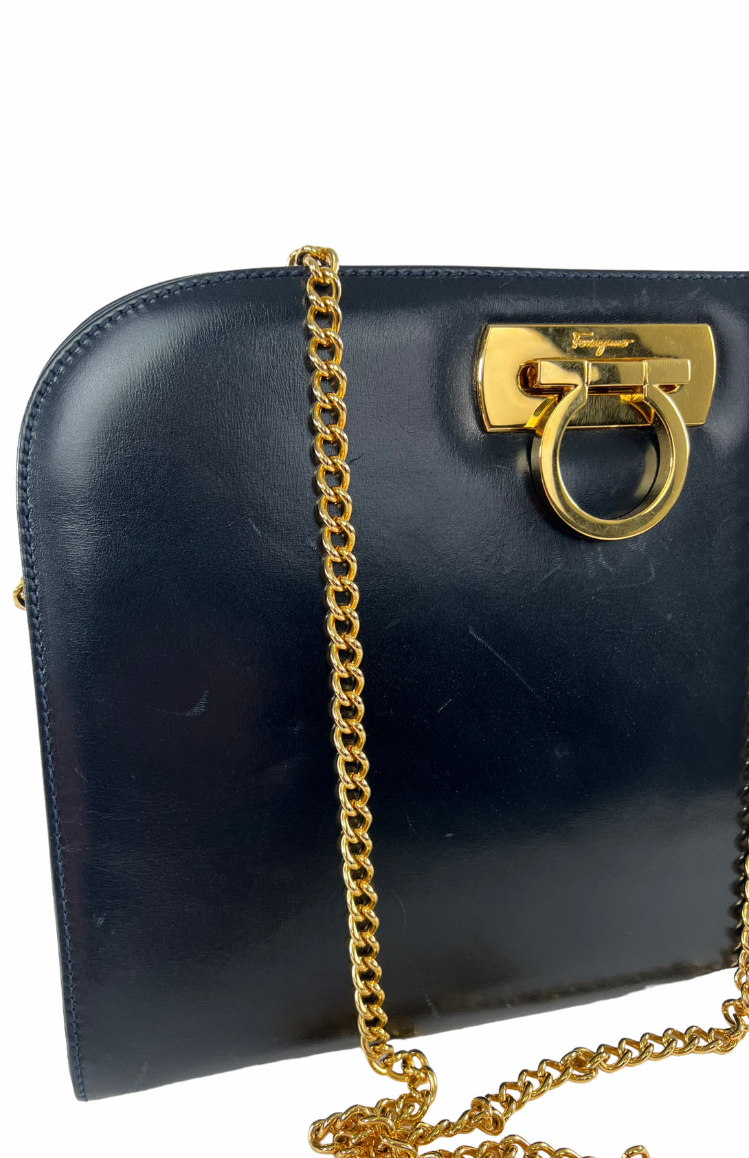 Salvatore Ferragamo Navy vintage bag with gold tone chain