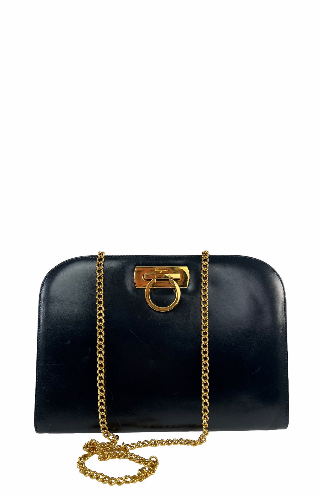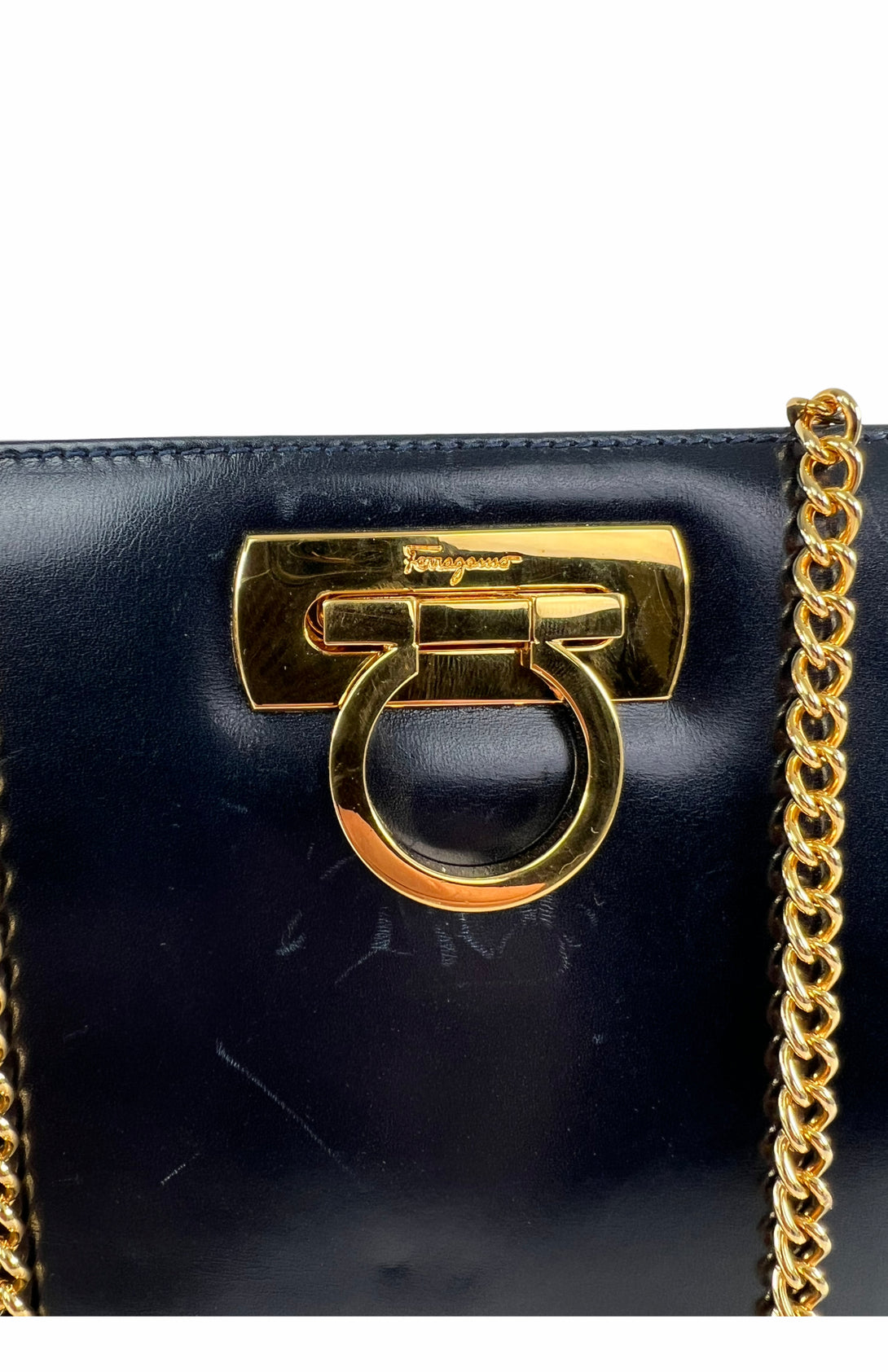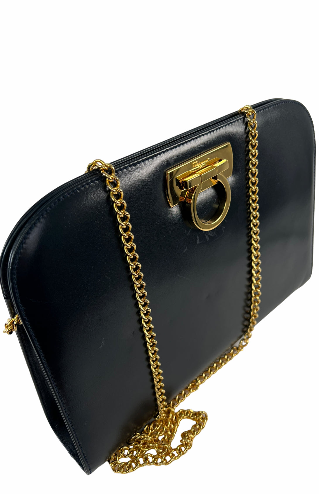 Salvatore Ferragamo Navy vintage bag with gold tone chain