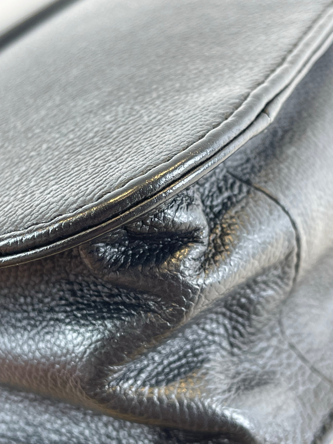 Good: Items show more prominent wear such as noticeable discoloration, stains and snags to fabric. May have worn corners and handles, tarnishing to hardware and creasing to leather. Pen or make up marks may be visible in the interior of the bag.