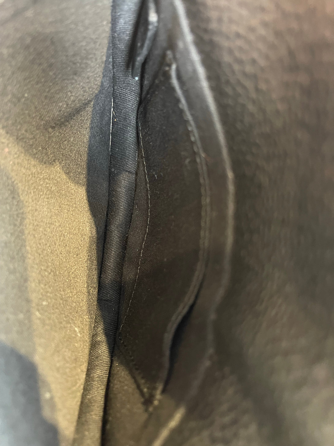 Good: Items show more prominent wear such as noticeable discoloration, stains and snags to fabric. May have worn corners and handles, tarnishing to hardware and creasing to leather. Pen or make up marks may be visible in the interior of the bag.