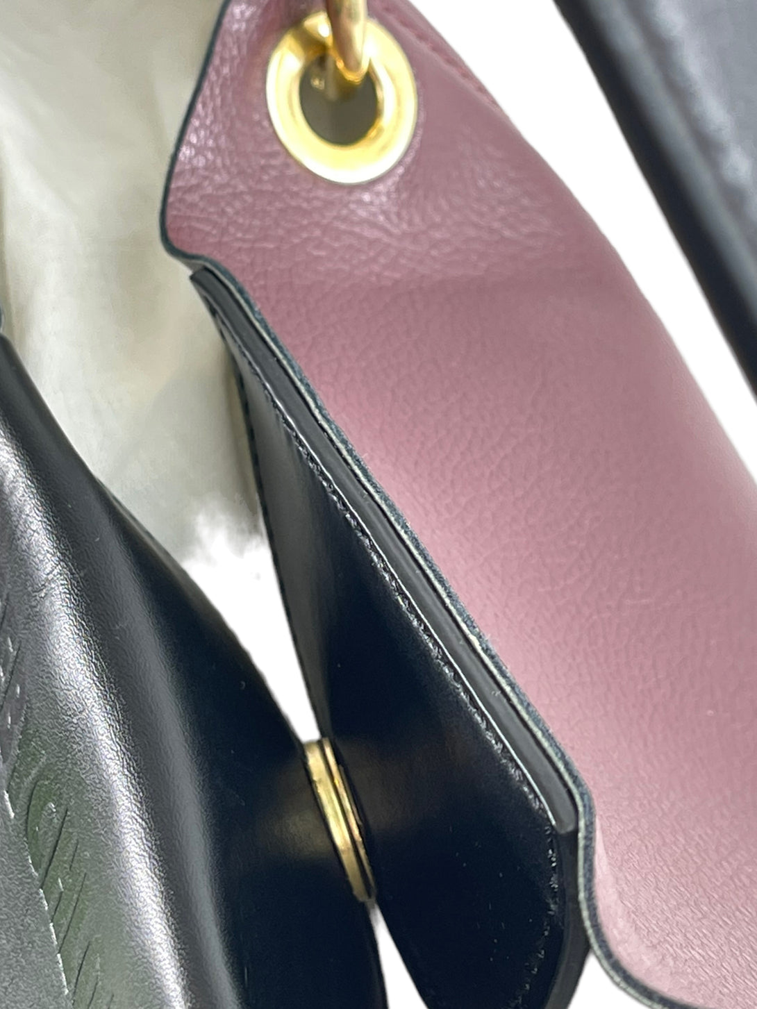 Good: Items show more prominent wear such as noticeable discoloration, stains and snags to fabric. May have worn corners and handles, tarnishing to hardware and creasing to leather. Pen or make up marks may be visible in the interior of the bag.