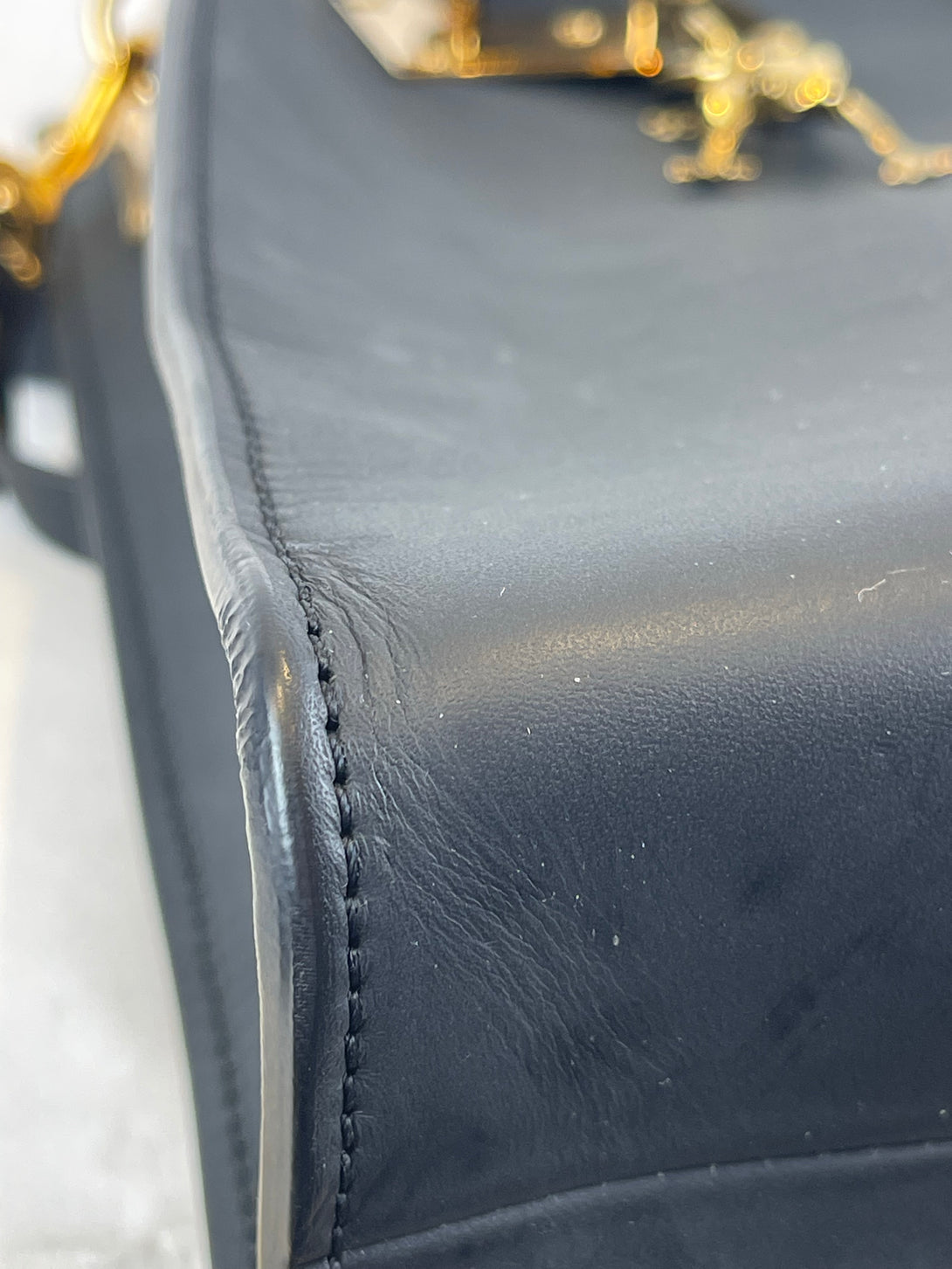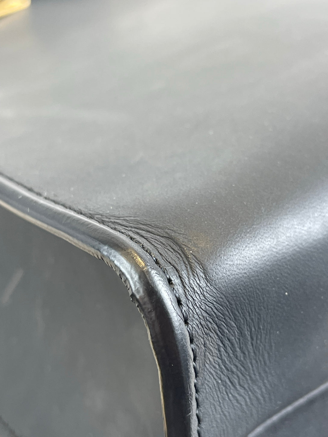 Good: Items show more prominent wear such as noticeable discoloration, stains and snags to fabric. May have worn corners and handles, tarnishing to hardware and creasing to leather. Pen or make up marks may be visible in the interior of the bag.