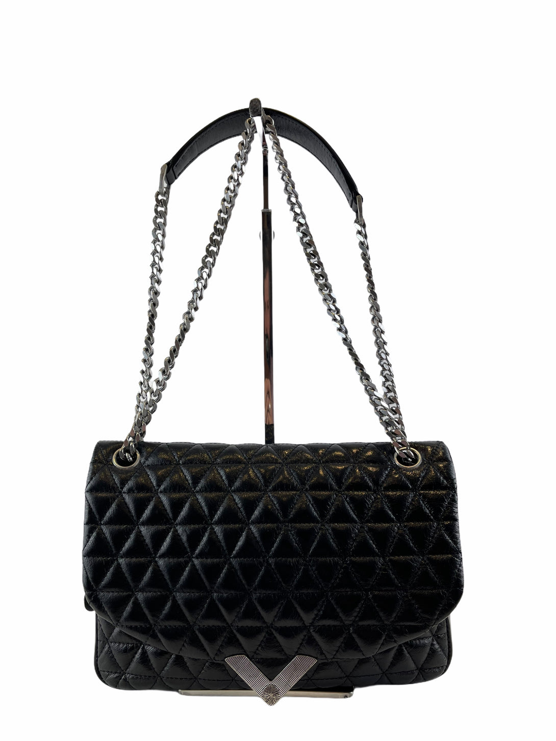 Good: Items show more prominent wear such as noticeable discoloration, stains and snags to fabric. May have worn corners and handles, tarnishing to hardware and creasing to leather. Pen or make up marks may be visible in the interior of the bag.