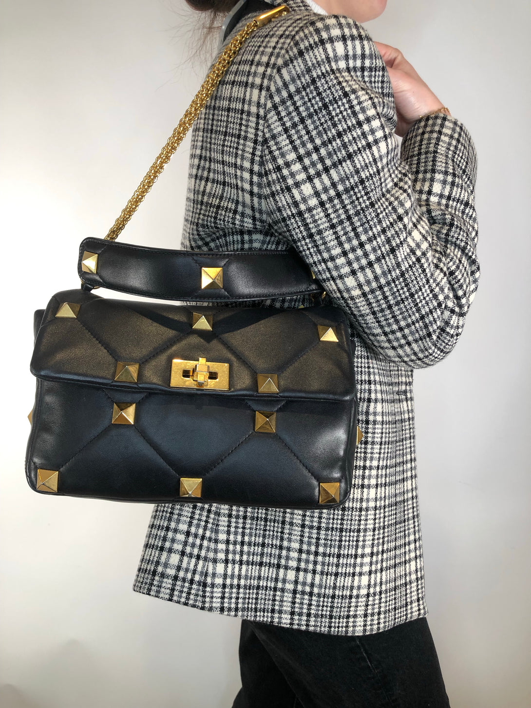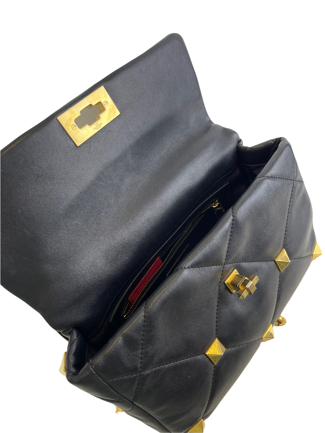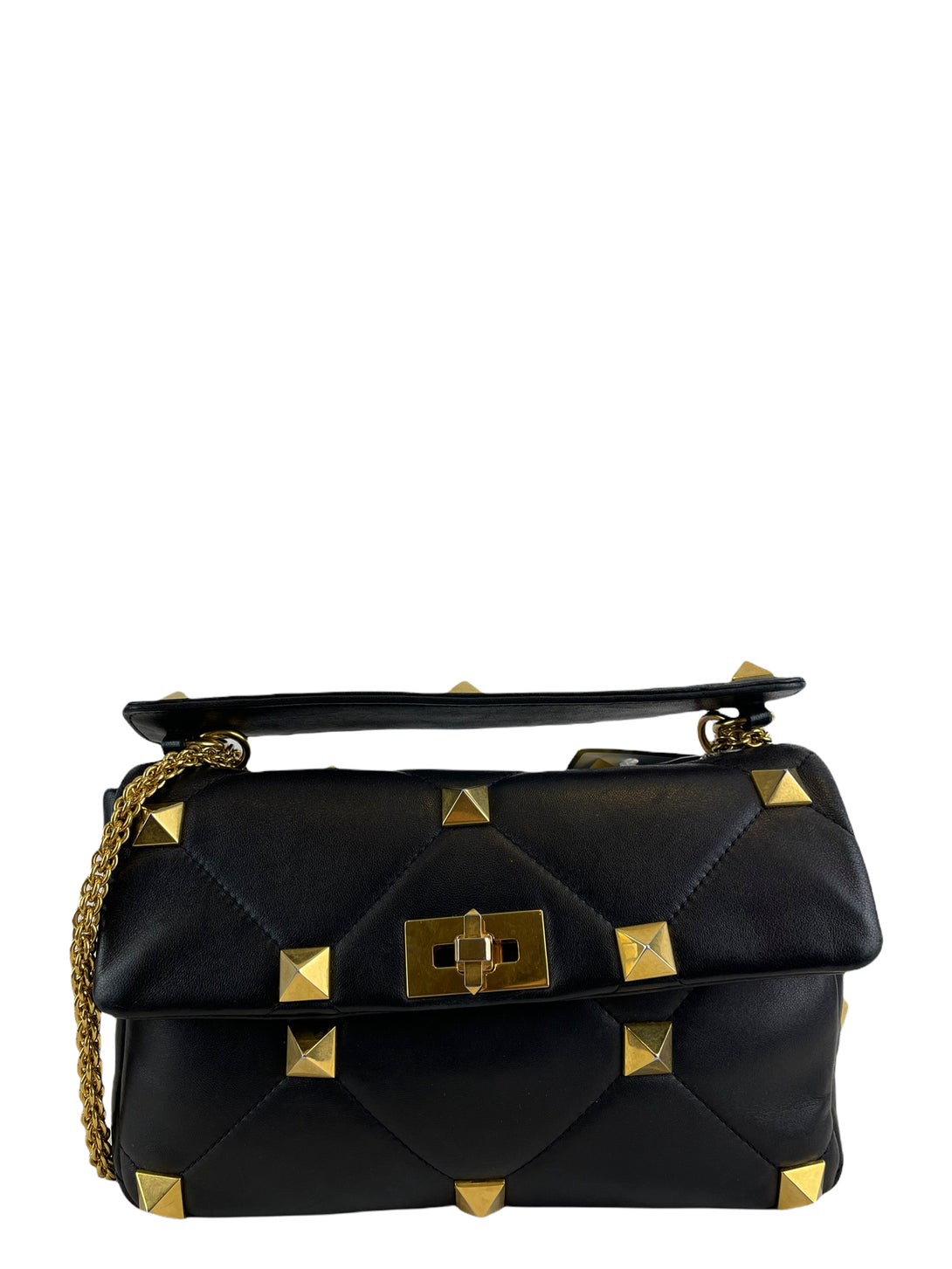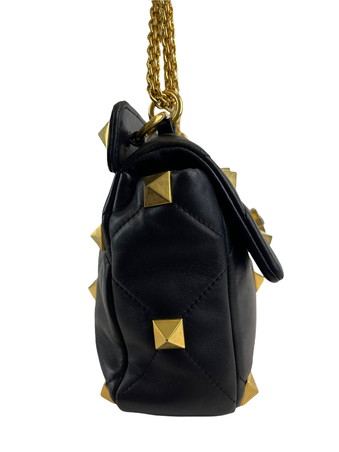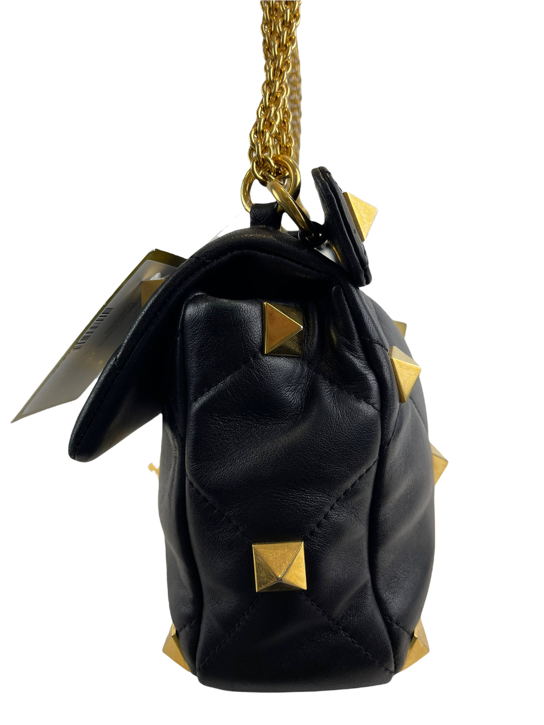 Valentino Black Nappa Lambskin Leather Studded ‘Roman’ Crossbody