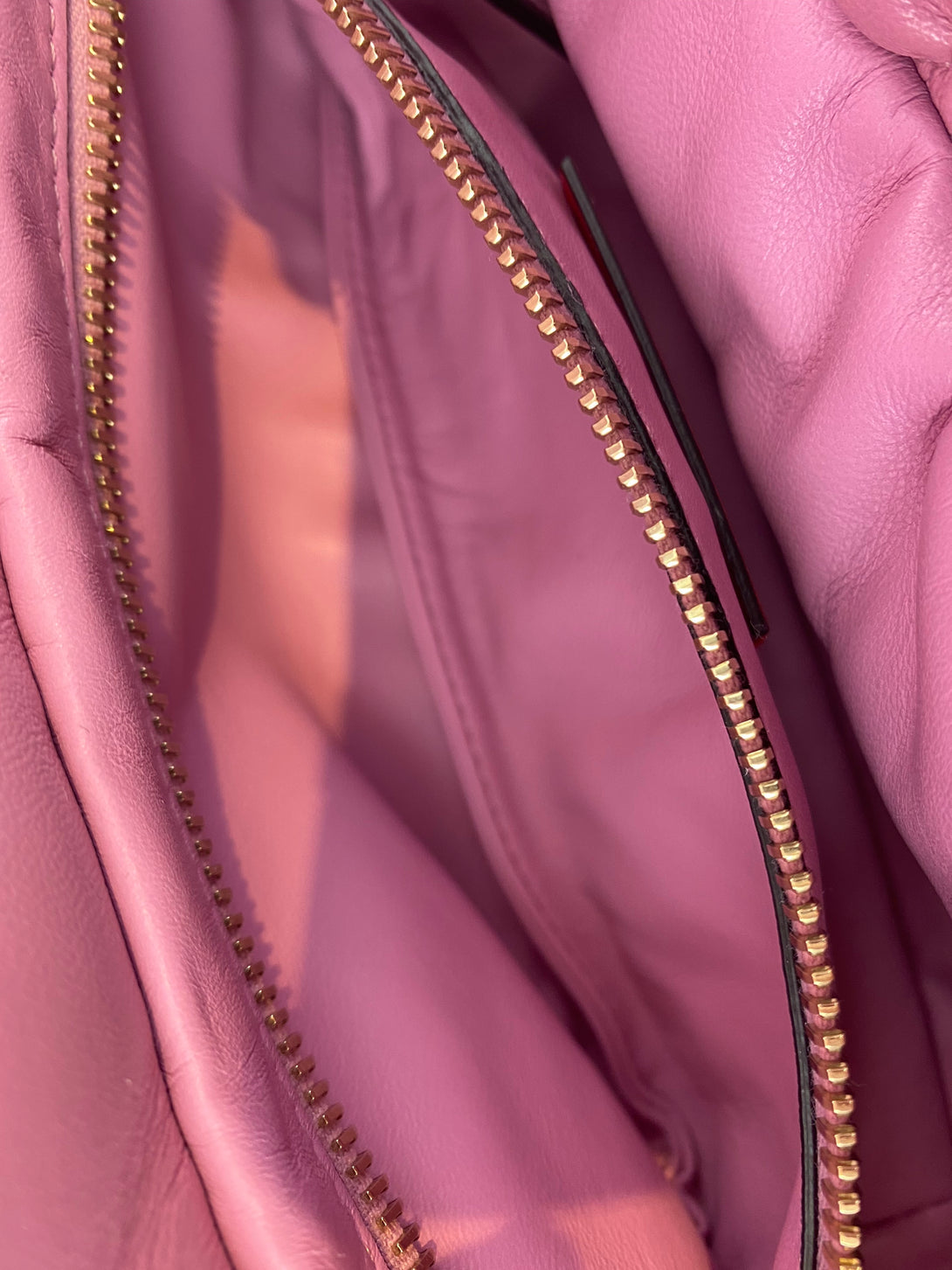 Good: Items show more prominent wear such as noticeable discoloration, stains and snags to fabric. May have worn corners and handles, tarnishing to hardware and creasing to leather. Pen or make up marks may be visible in the interior of the bag.