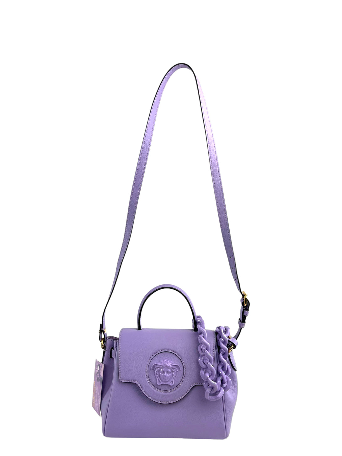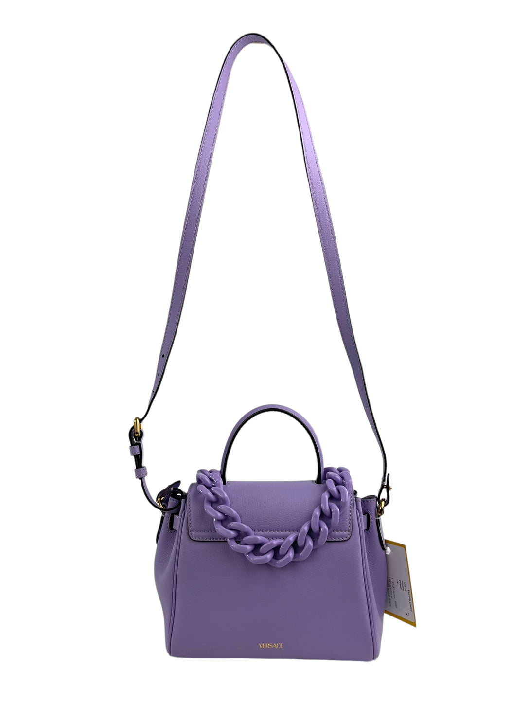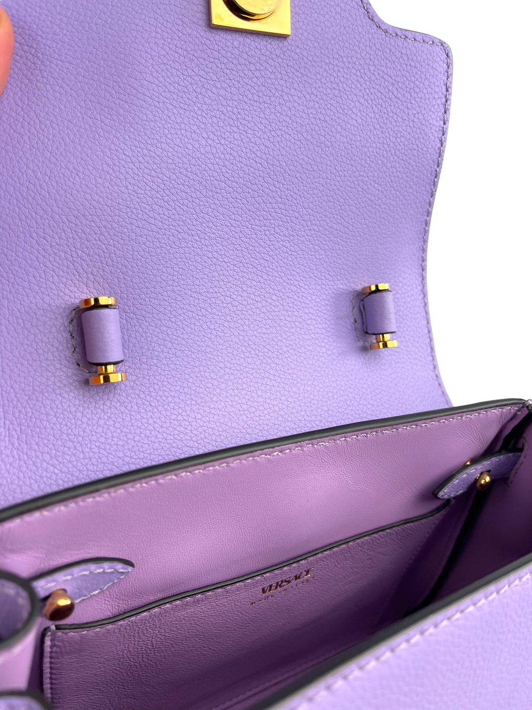 Versace La Medusa Lilac Grained Leather Top Handle Crossbody