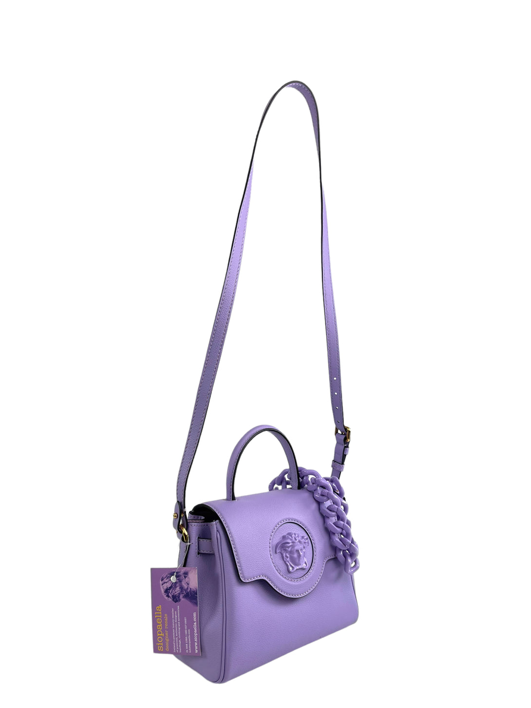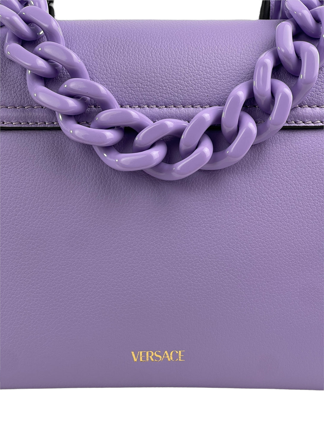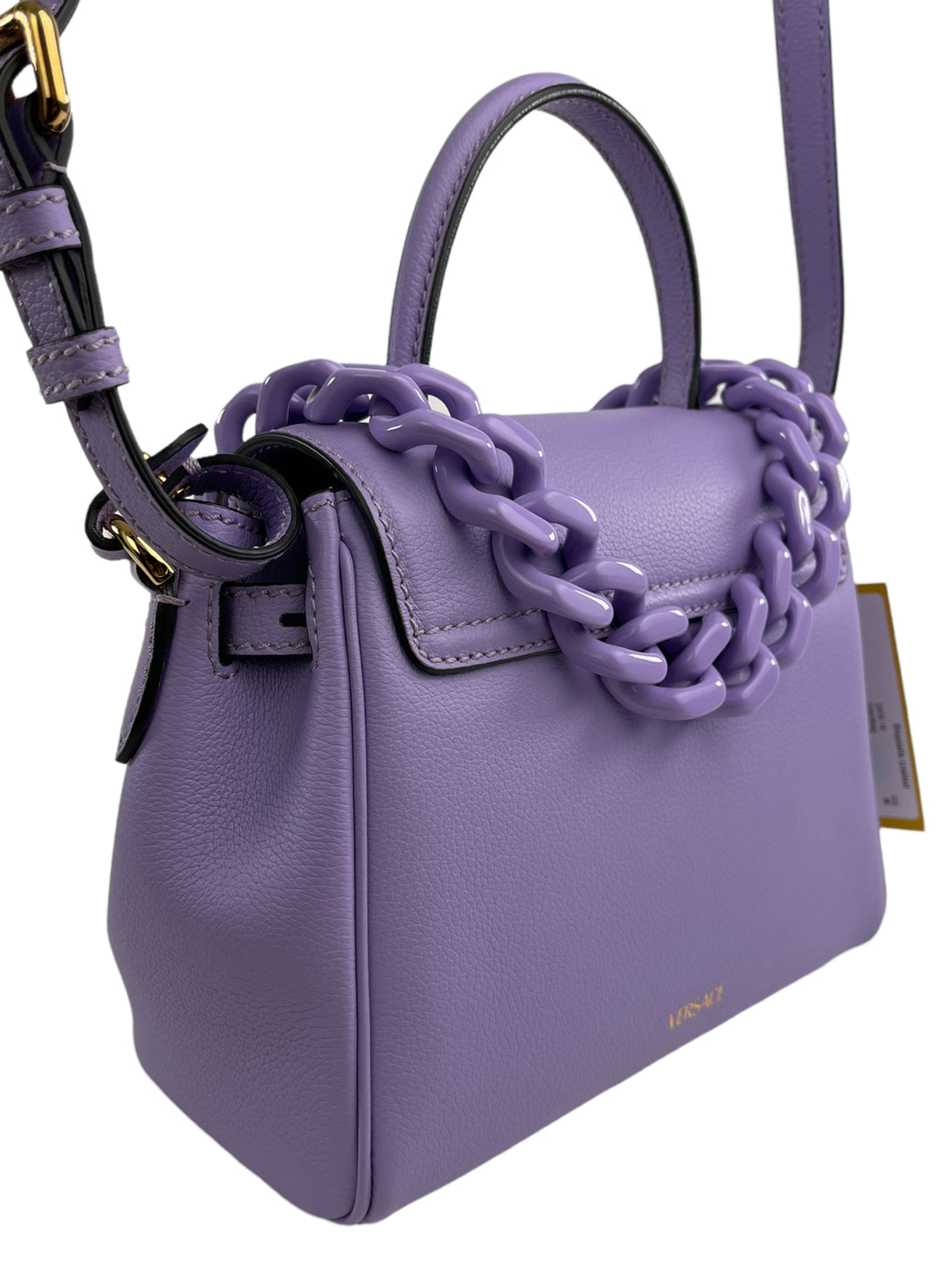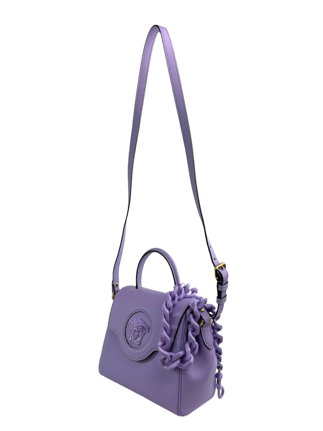 Versace La Medusa Lilac Grained Leather Top Handle Crossbody