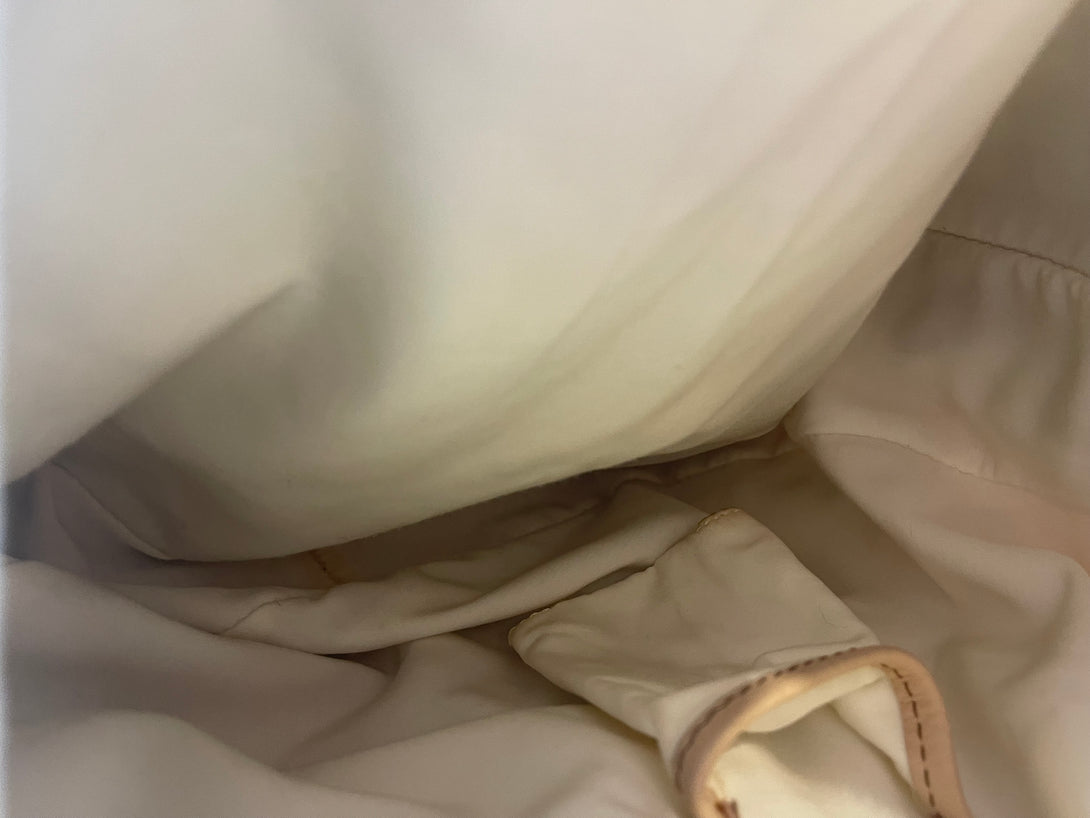 Good: Items show more prominent wear such as noticeable discoloration, stains and snags to fabric. May have worn corners and handles, tarnishing to hardware and creasing to leather. Pen or make up marks may be visible in the interior of the bag.