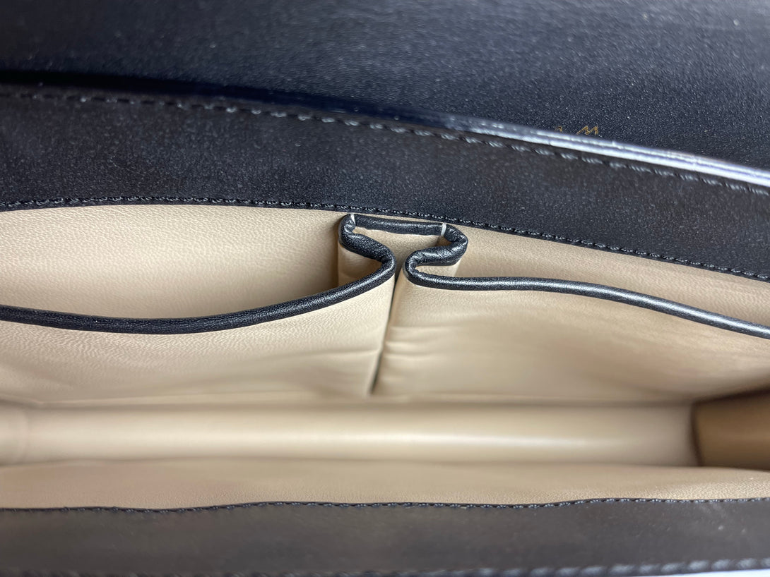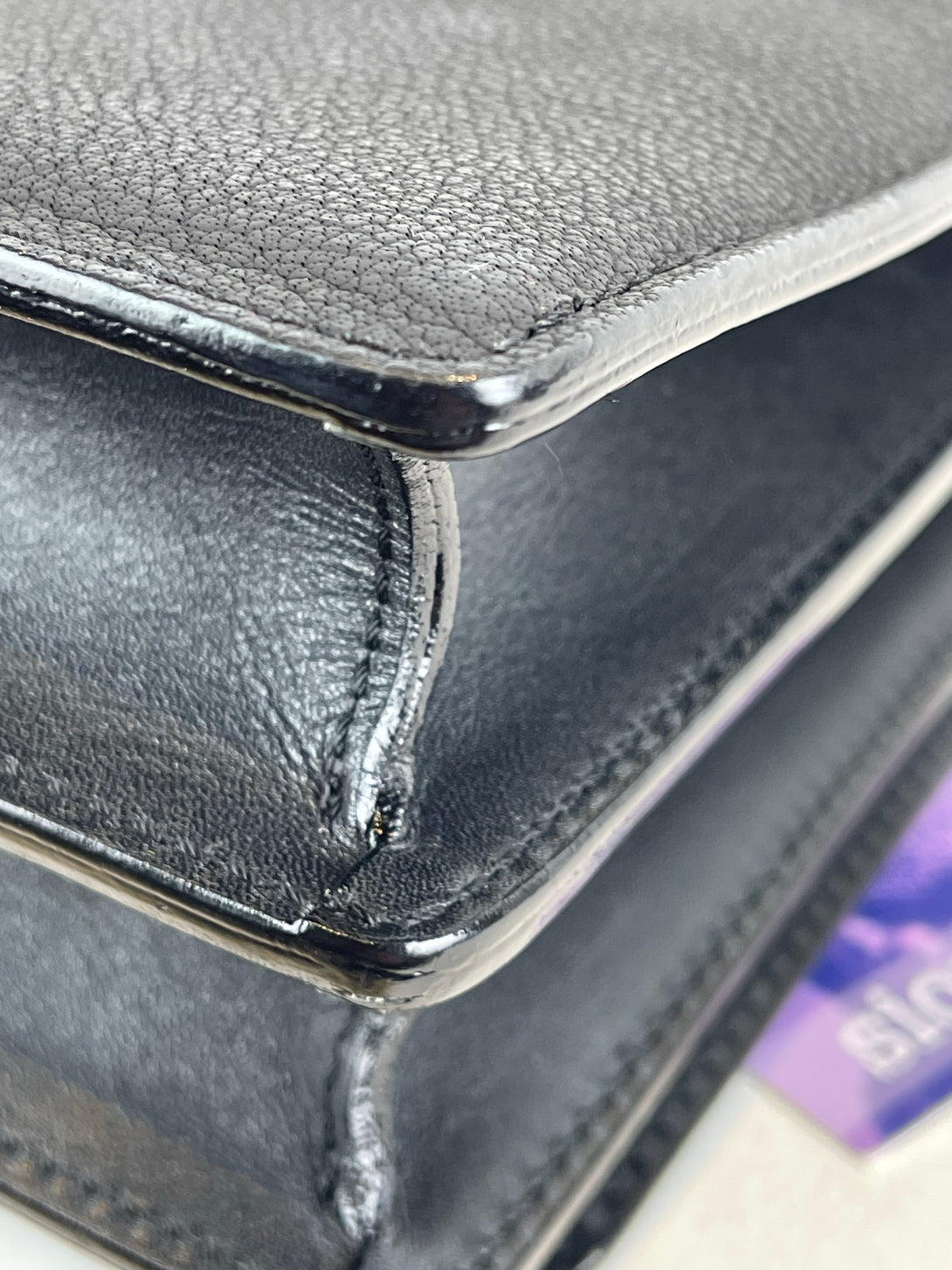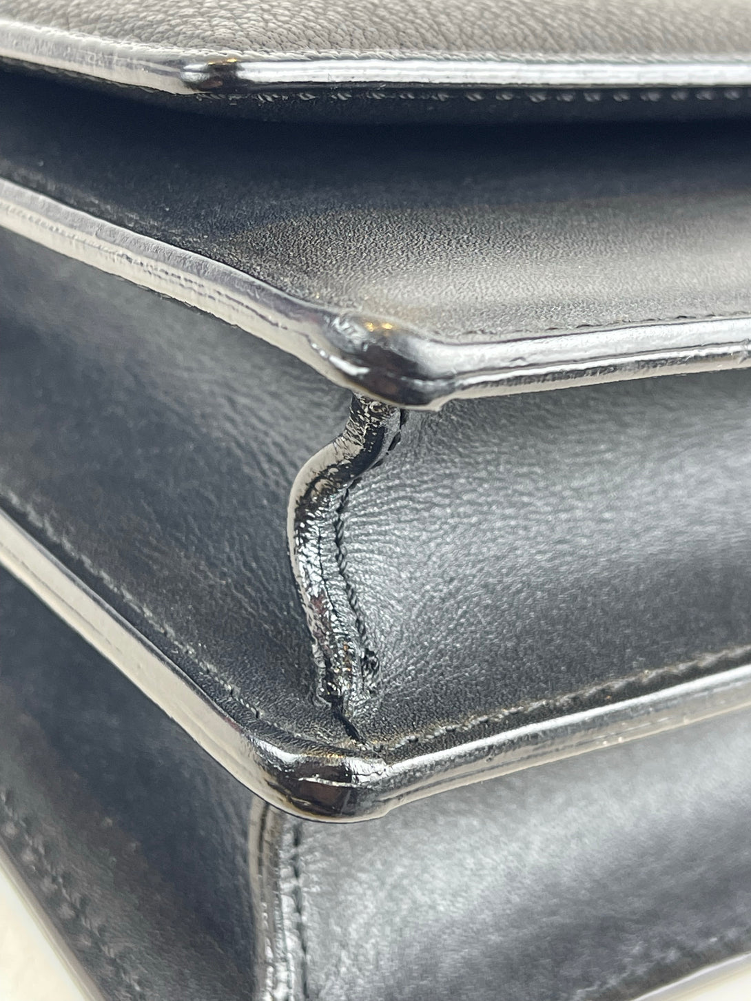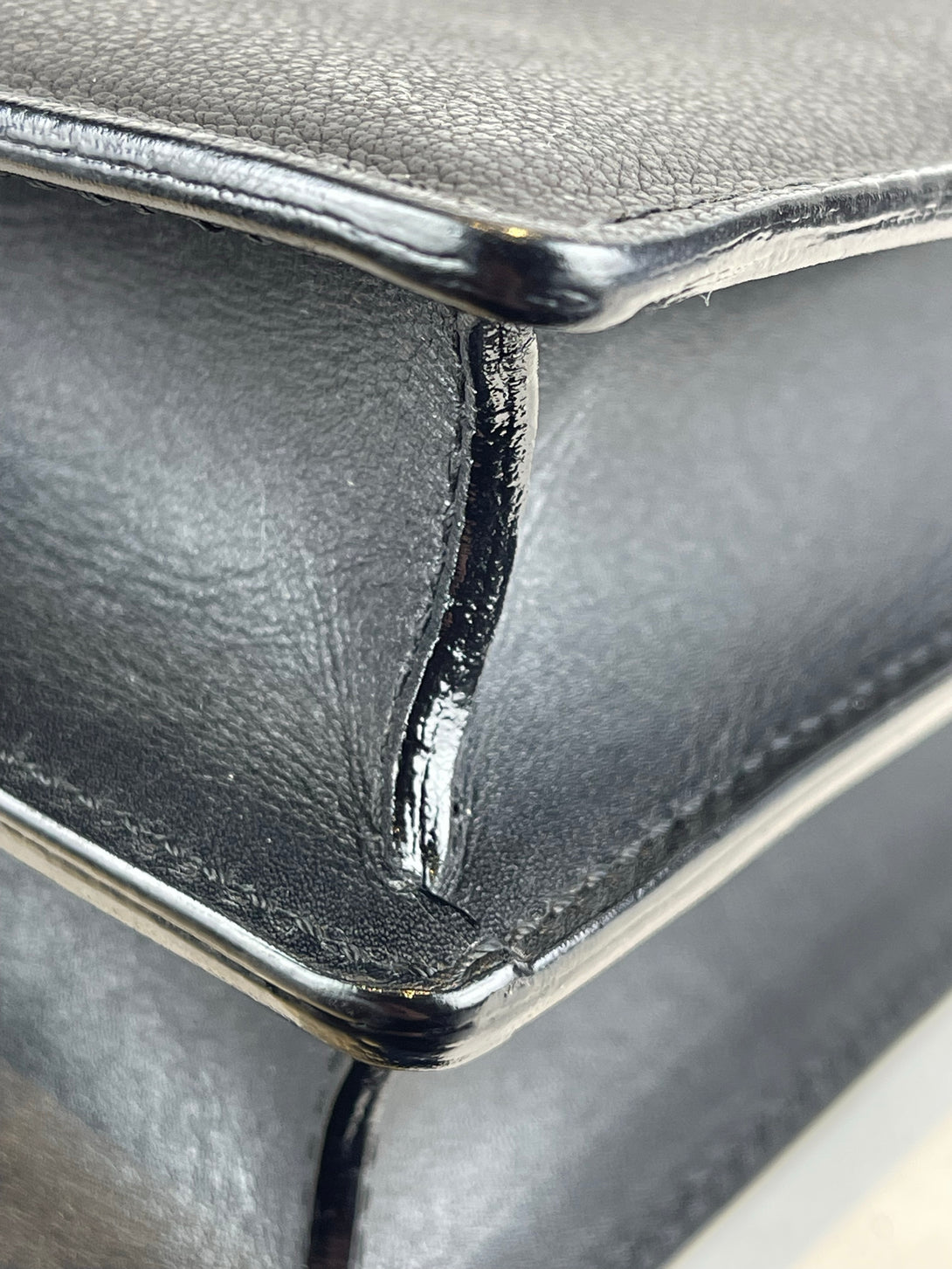 Good: Items show more prominent wear such as noticeable discoloration, stains and snags to fabric. May have worn corners and handles, tarnishing to hardware and creasing to leather. Pen or make up marks may be visible in the interior of the bag.