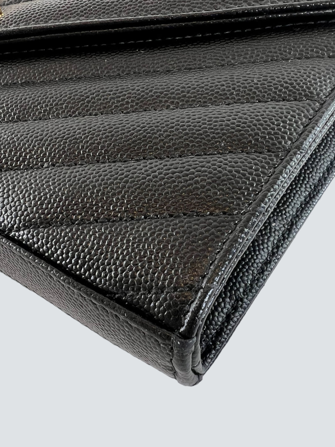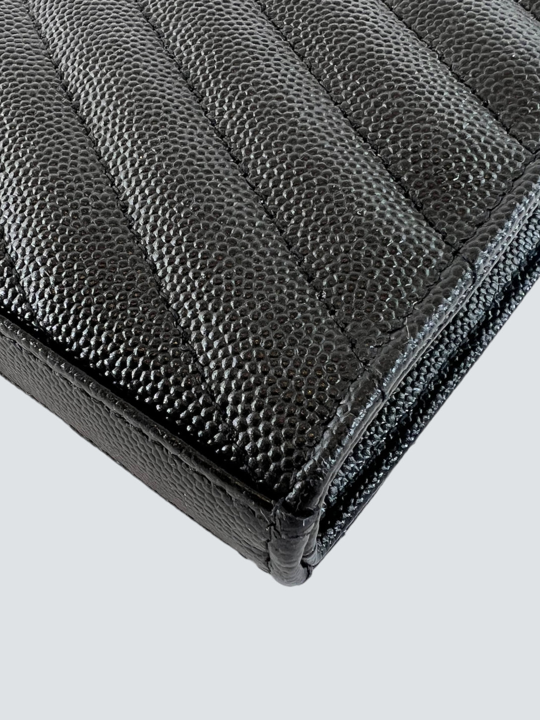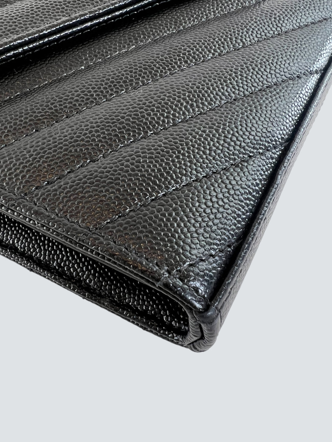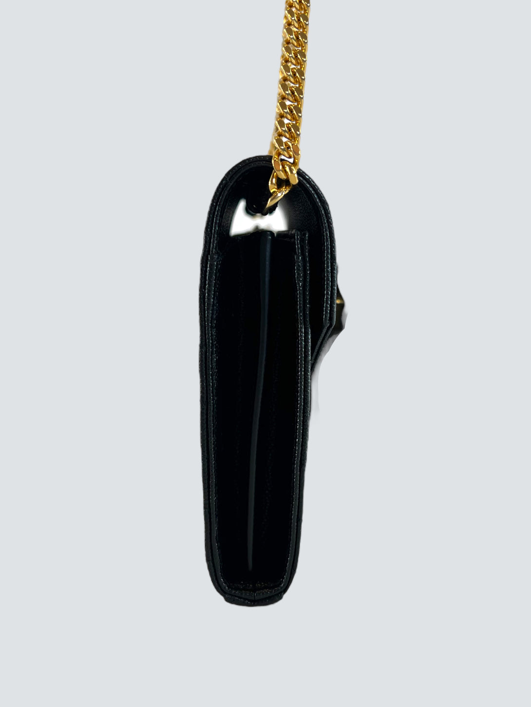 Saint Laurent Black Chevron Leather Cassandree Wallet on Chain