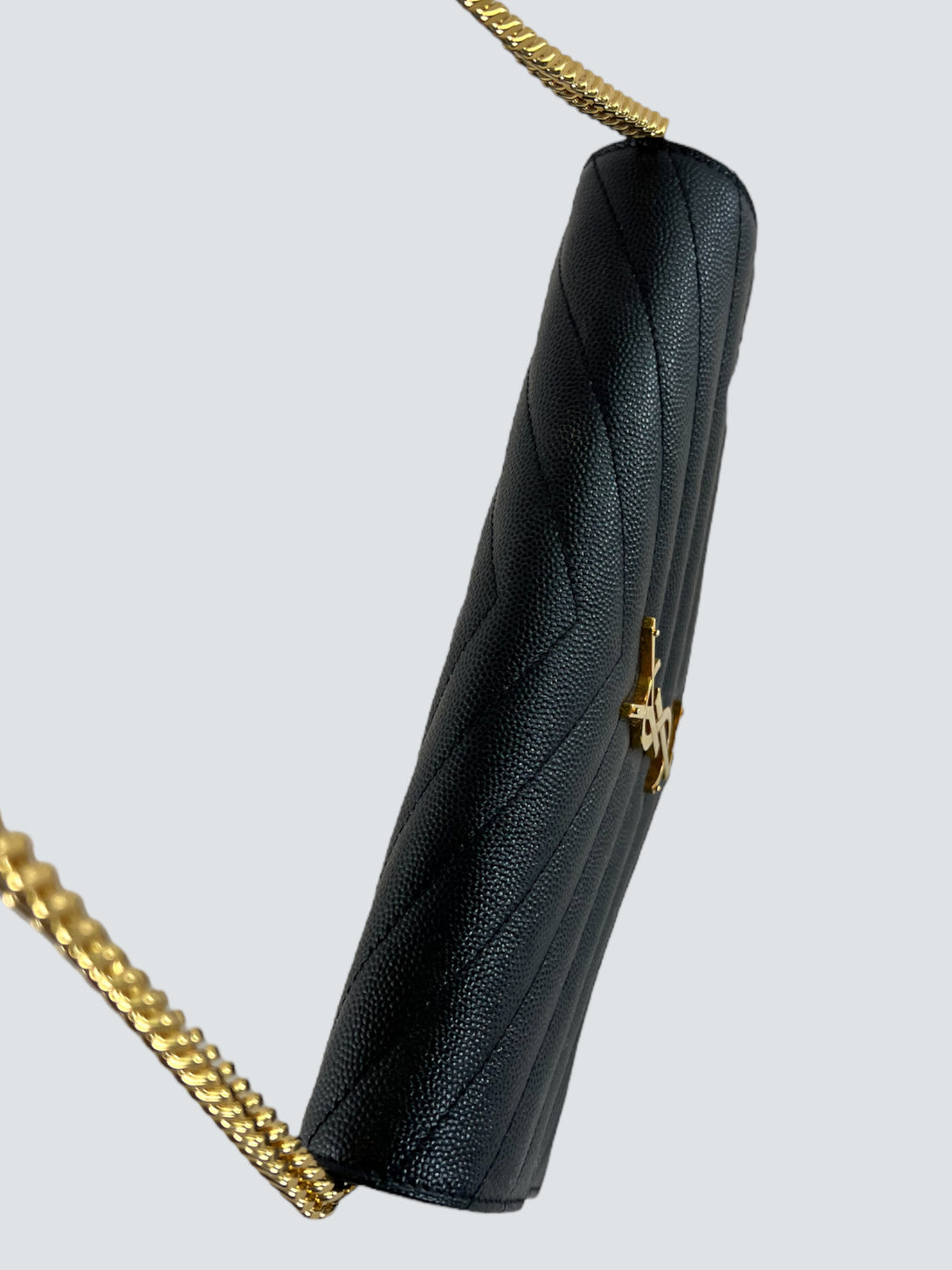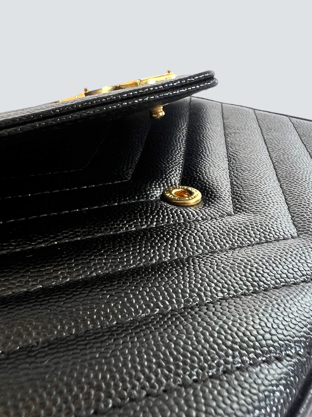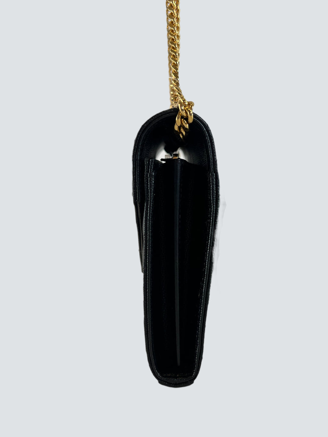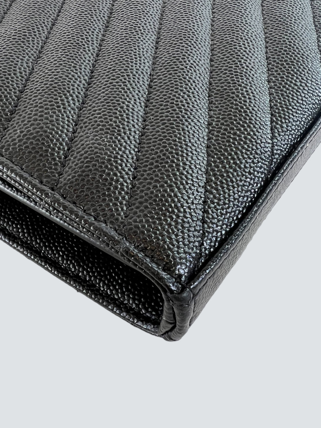 Saint Laurent Black Chevron Leather Cassandree Wallet on Chain