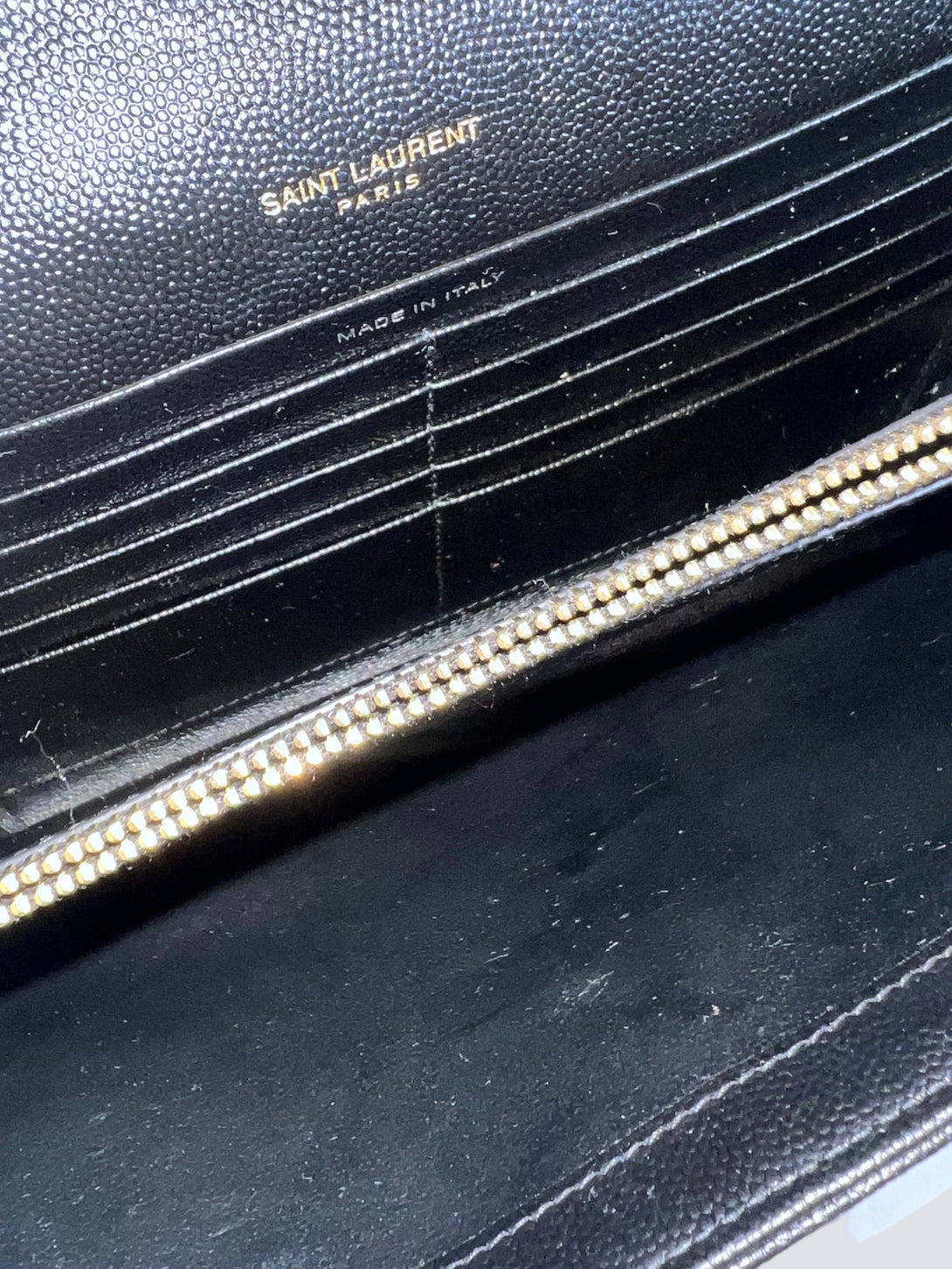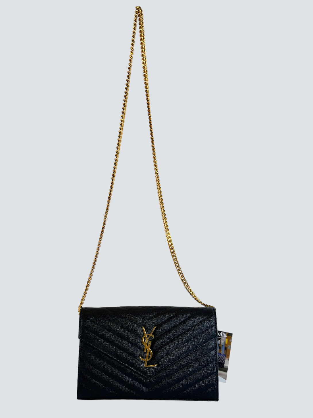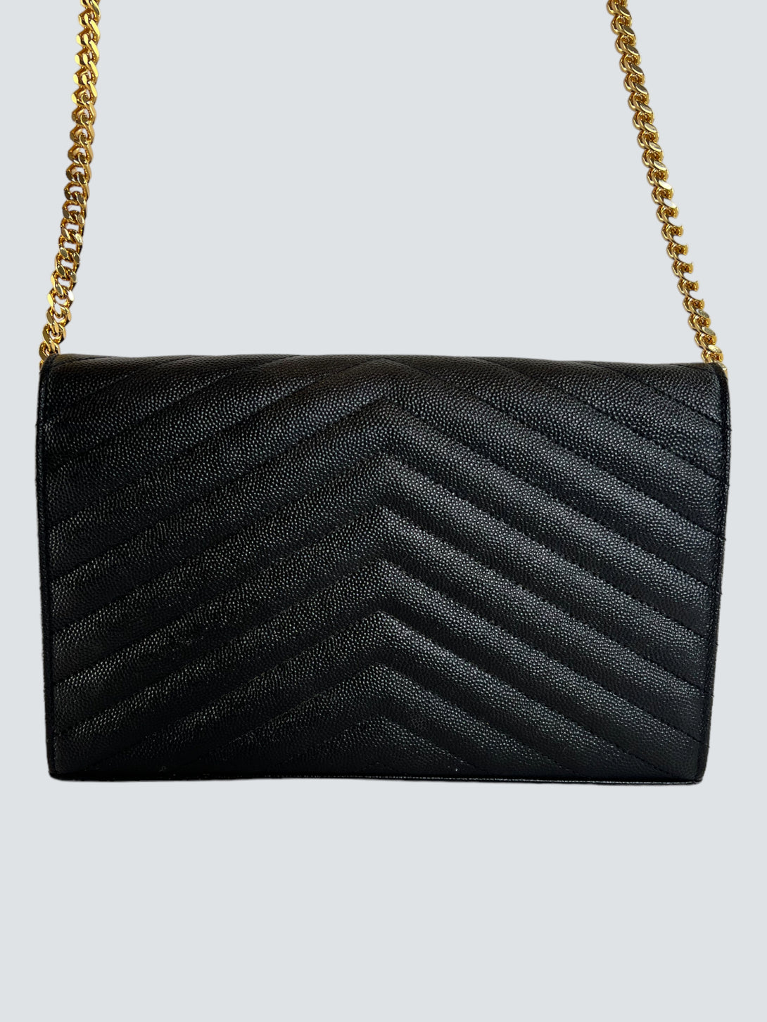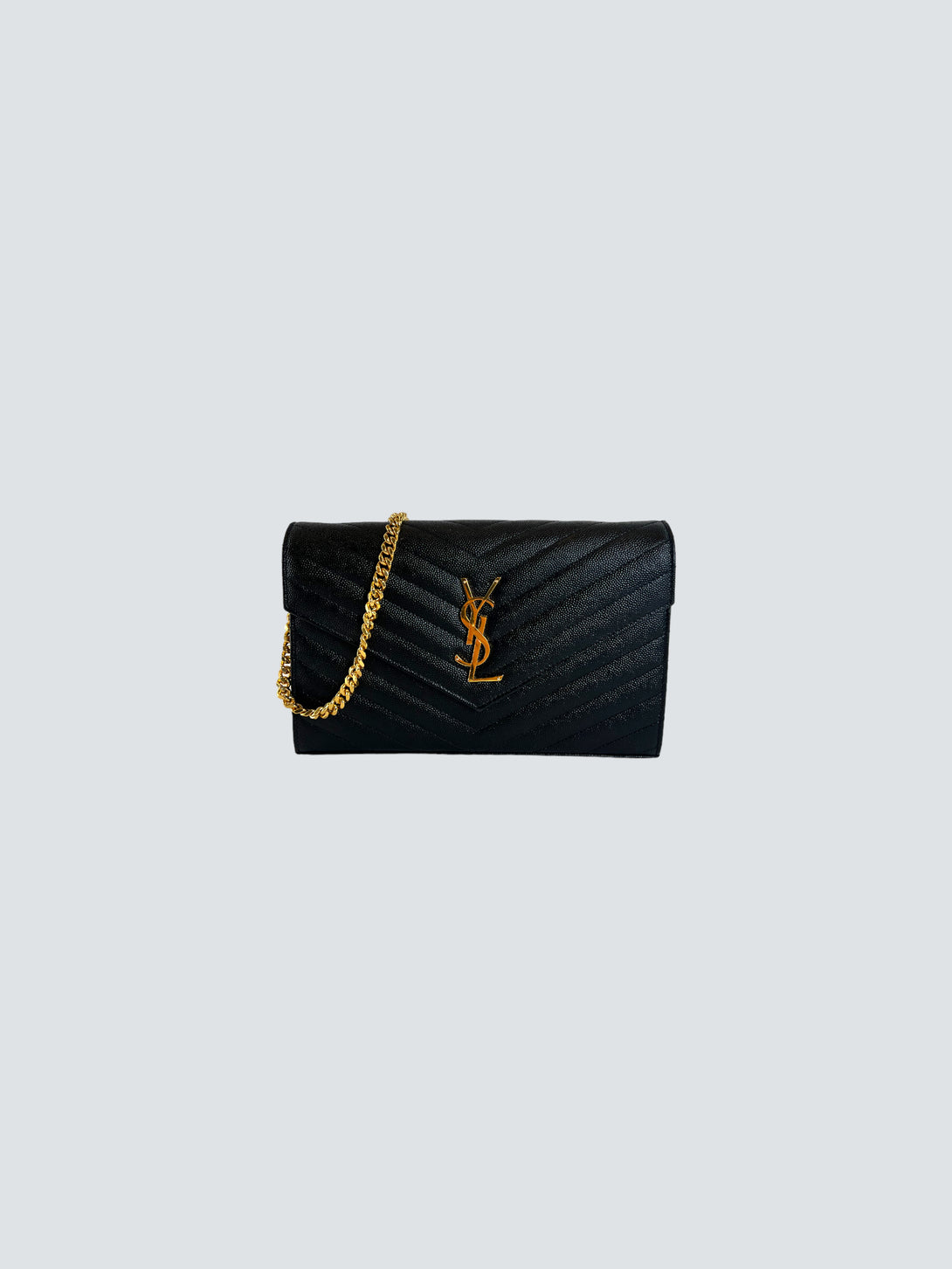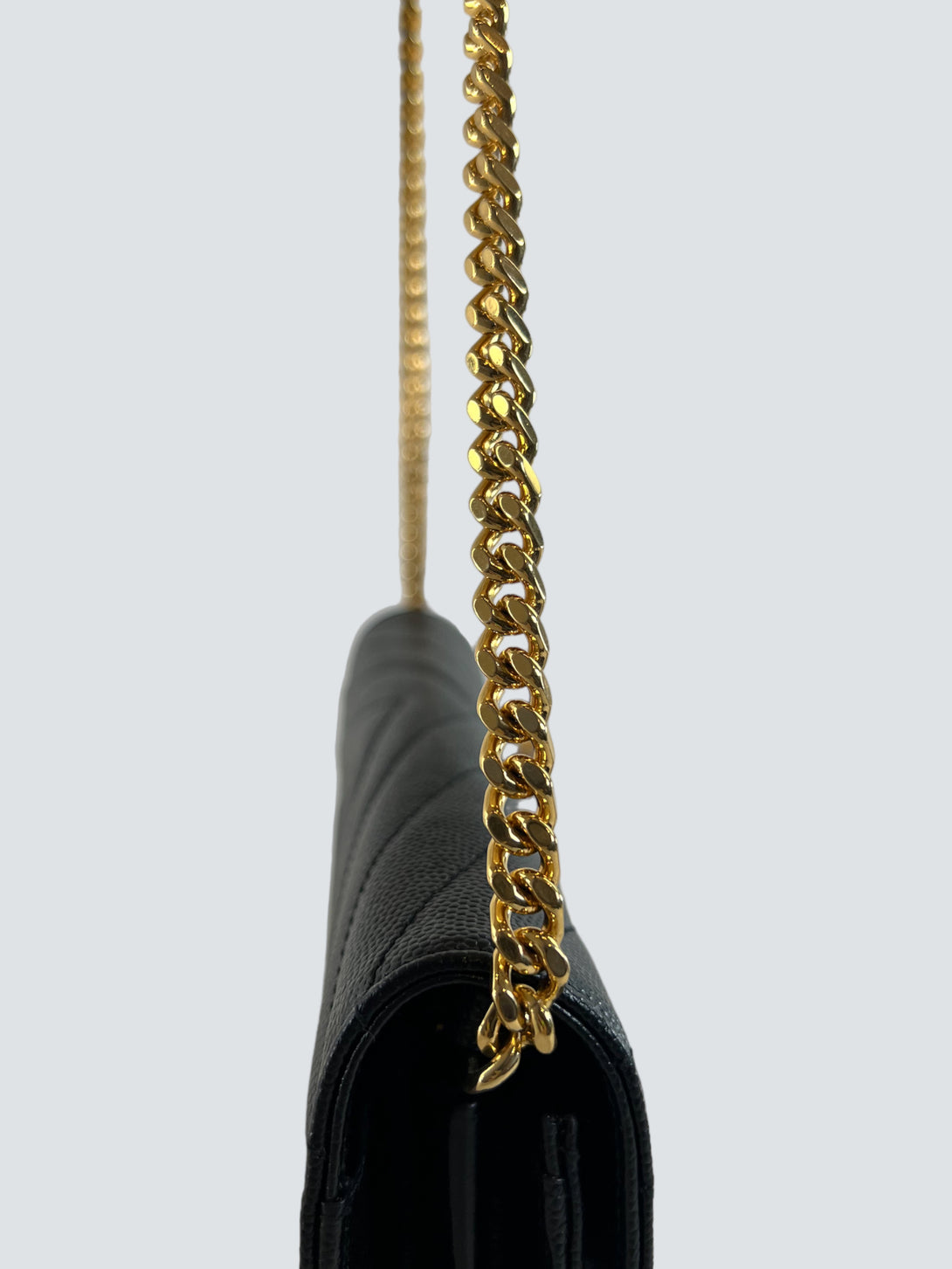 Saint Laurent Black Chevron Leather Cassandree Wallet on Chain