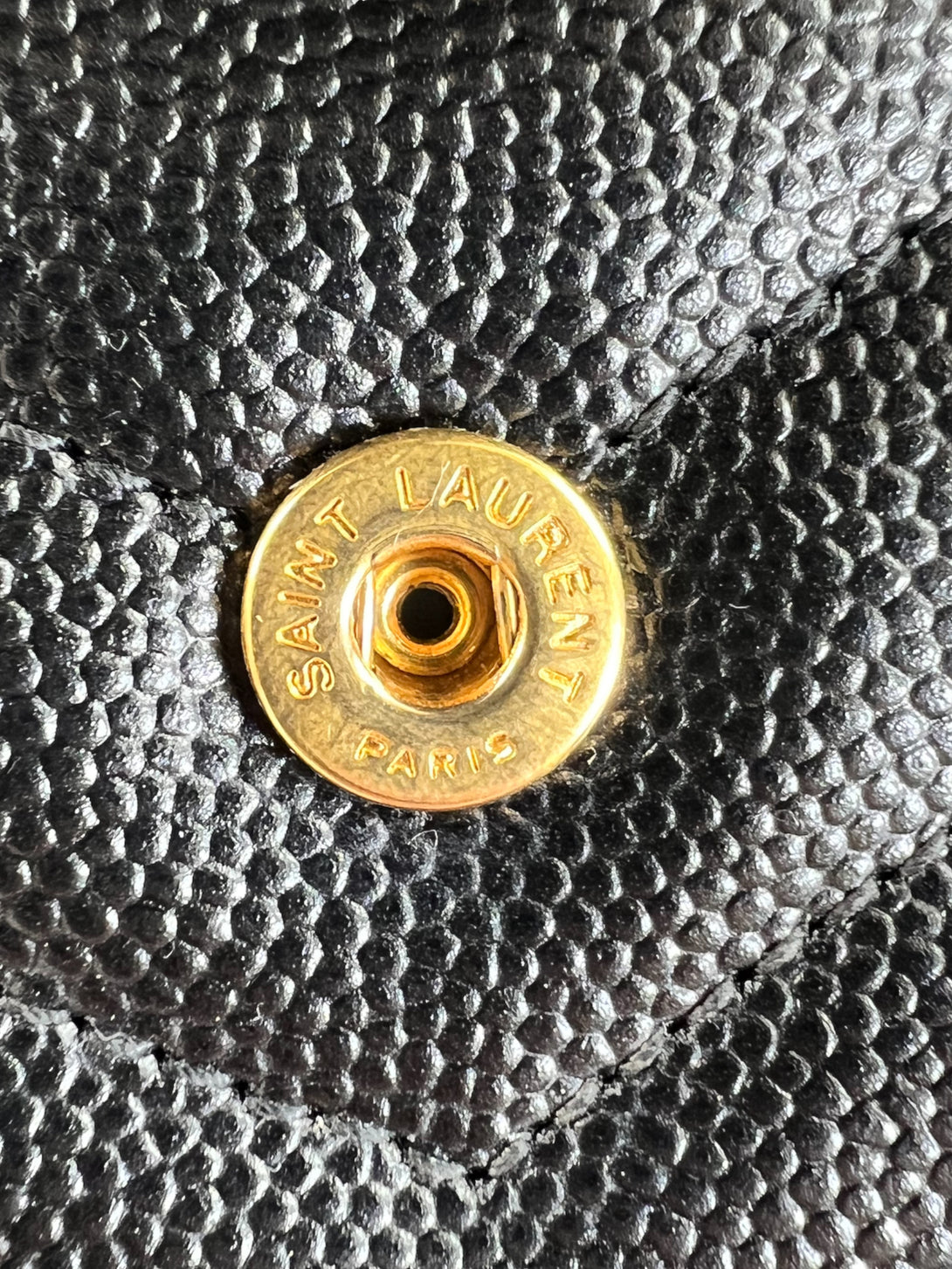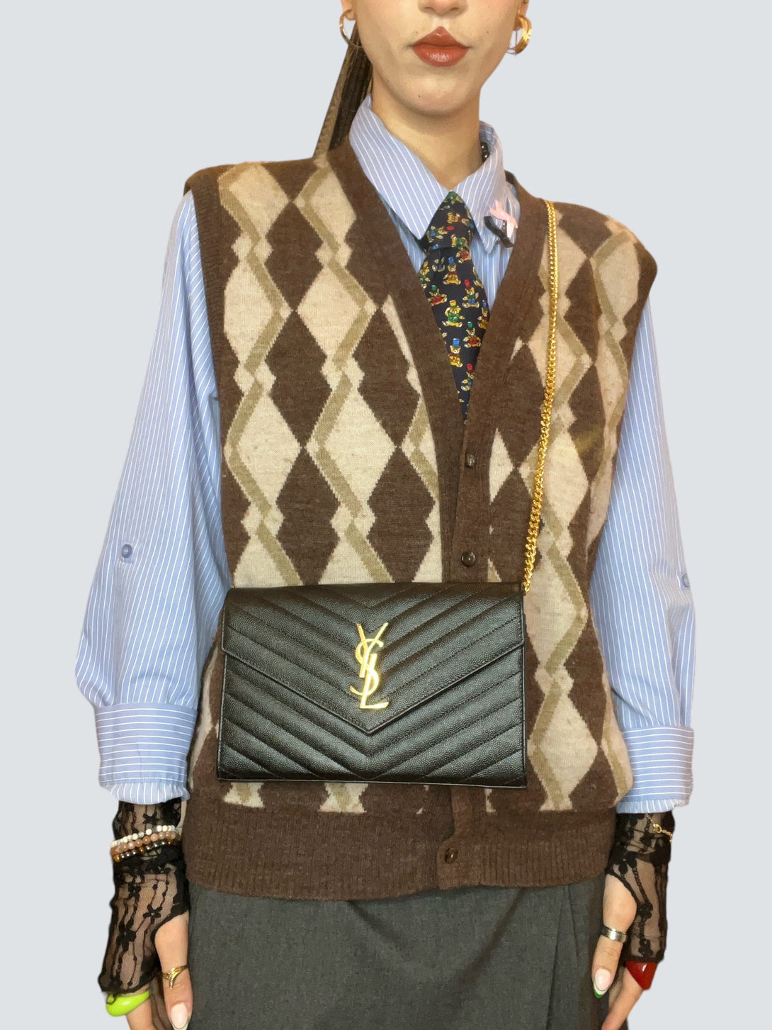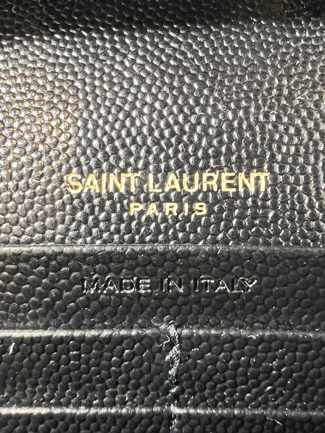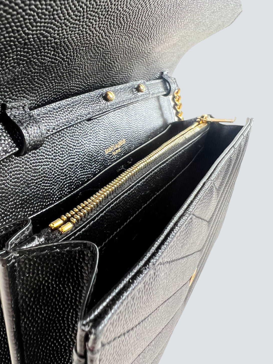 Saint Laurent Black Chevron Leather Cassandree Wallet on Chain