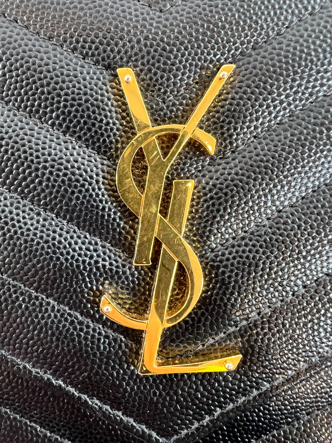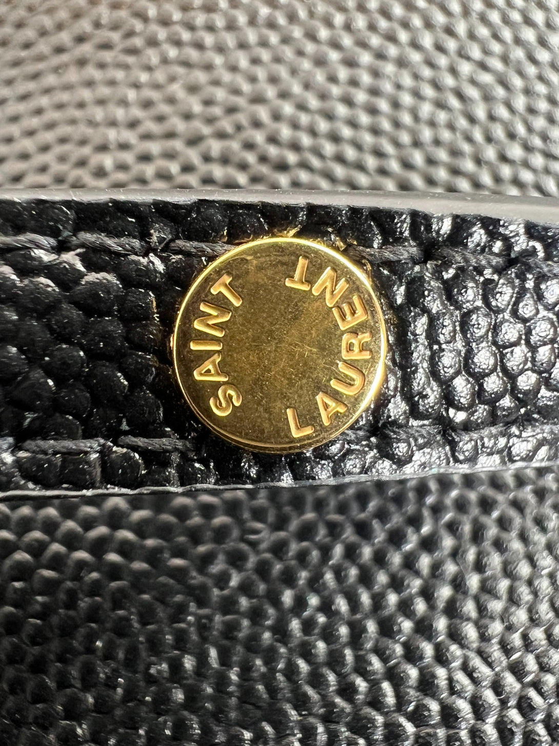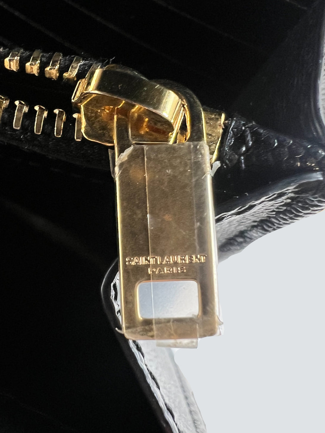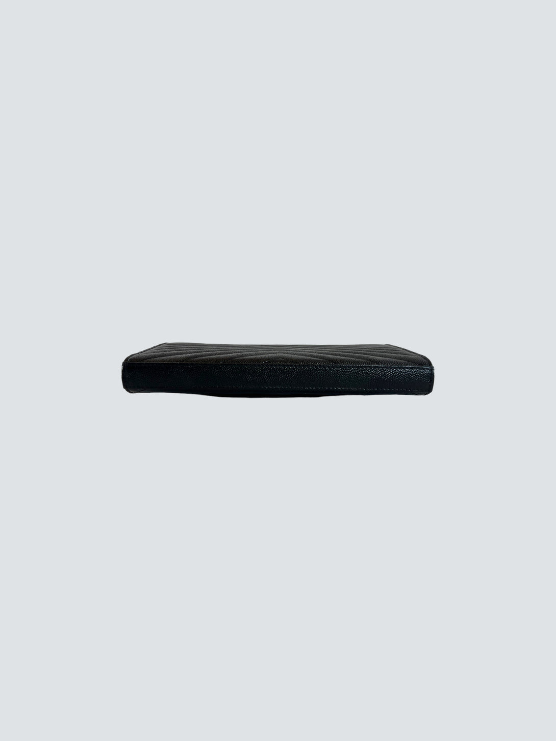 Saint Laurent Black Chevron Leather Cassandree Wallet on Chain