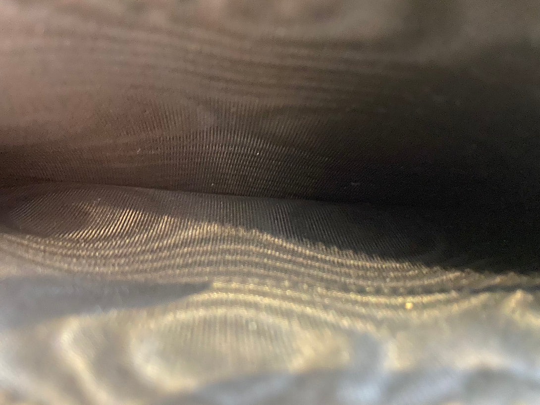 Good: Items show more prominent wear such as noticeable discoloration, stains and snags to fabric. May have worn corners and handles, tarnishing to hardware and creasing to leather. Pen or make up marks may be visible in the interior of the bag.
