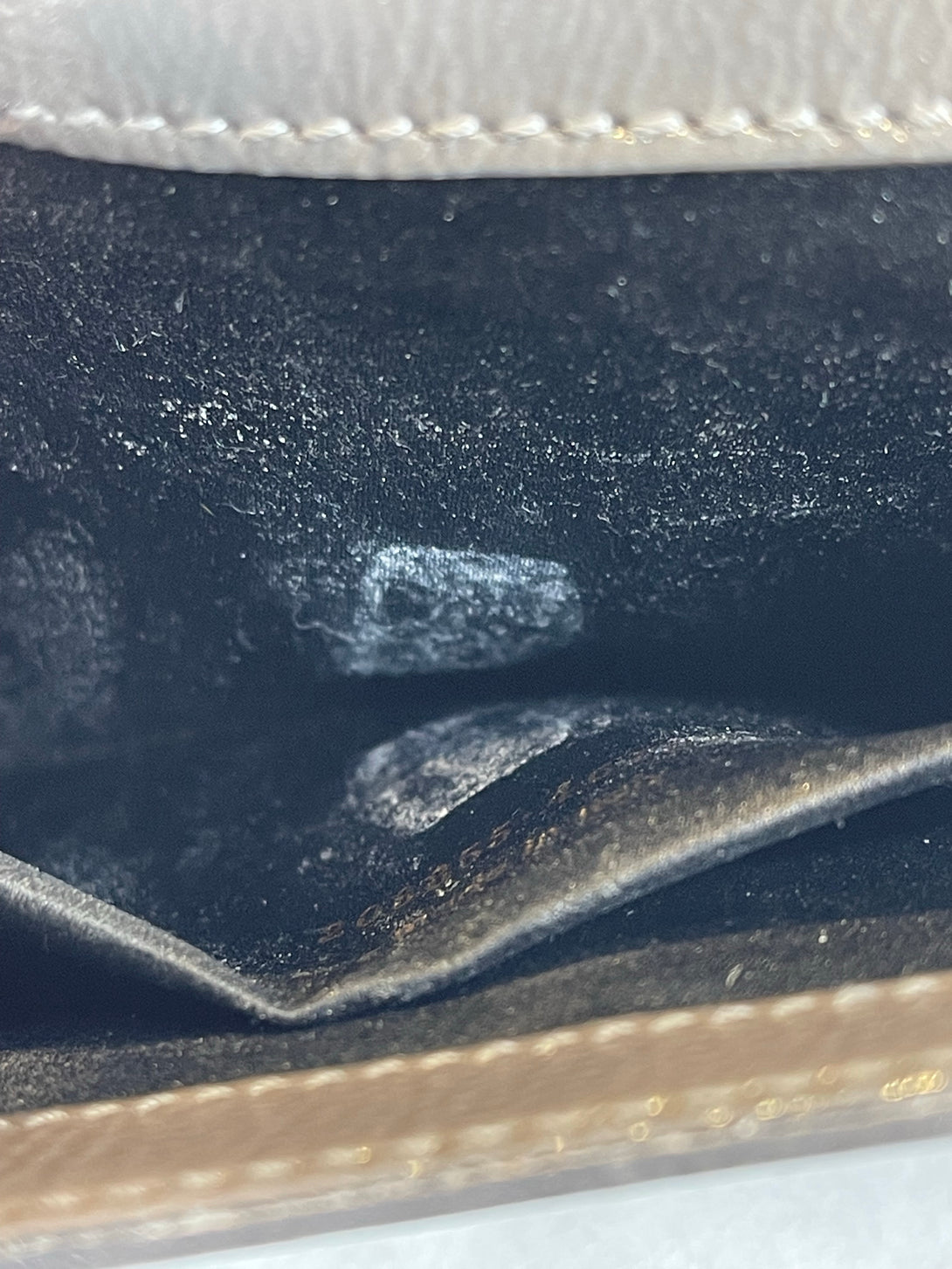 Good: Items show more prominent wear such as noticeable discoloration, stains and snags to fabric. May have worn corners and handles, tarnishing to hardware and creasing to leather. Pen or make up marks may be visible in the interior of the bag.
