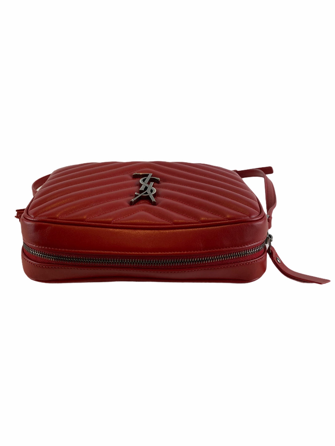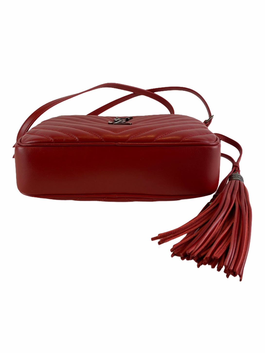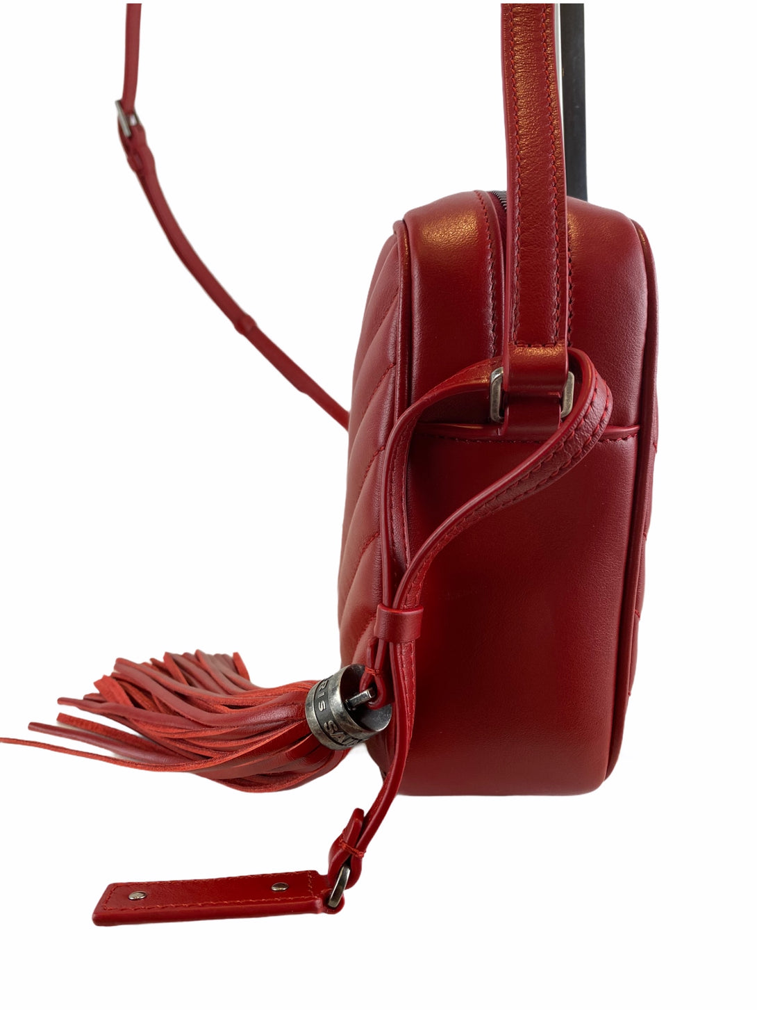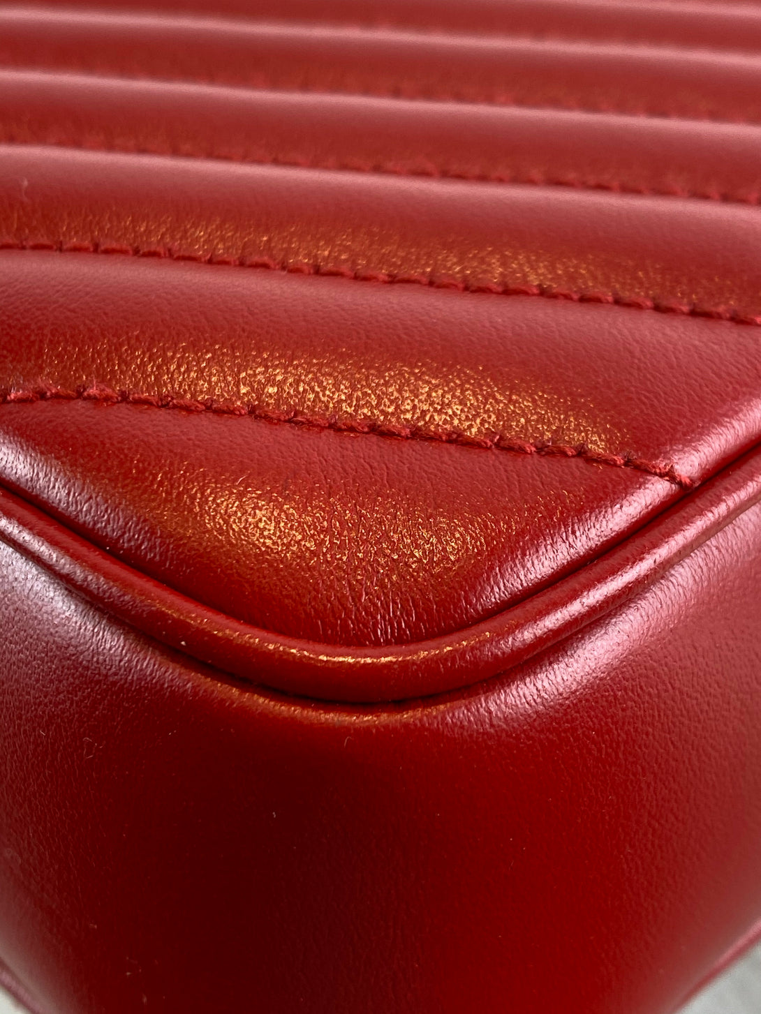 Saint Laurent Red Chevron Leather Small "Lou" Camera Crossbody - As seen on Instagram live 21/04/21