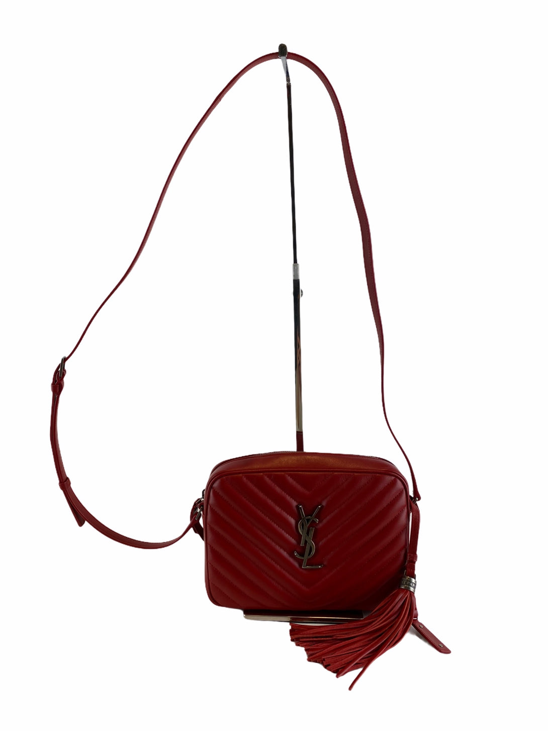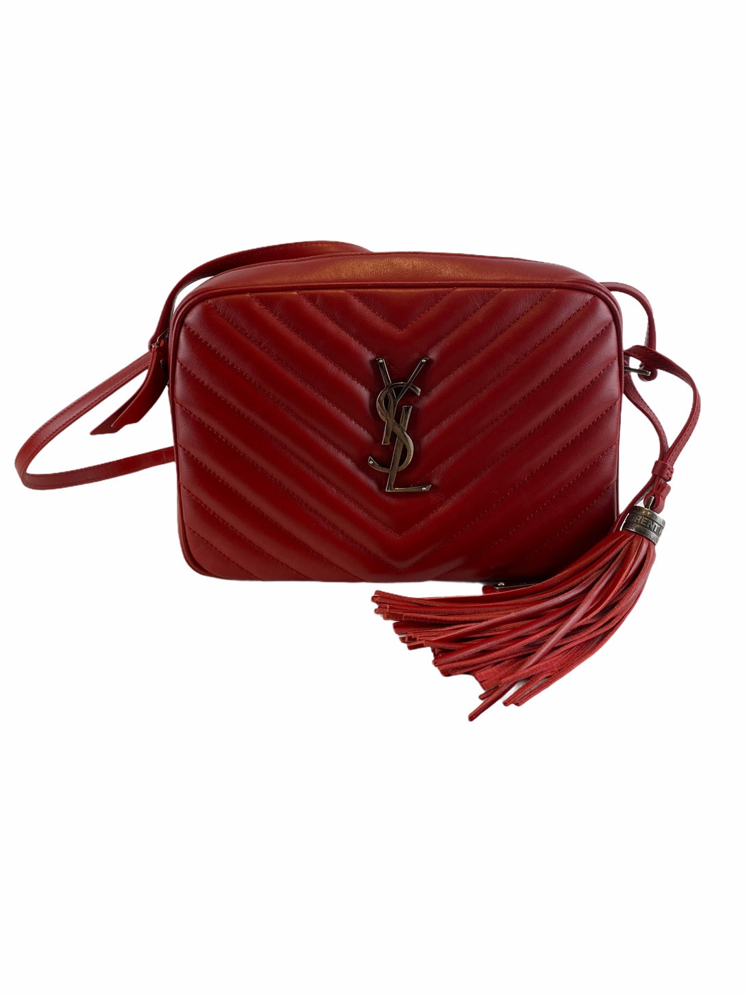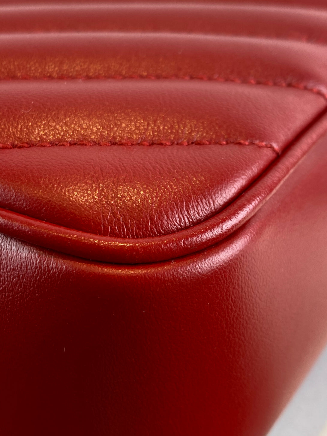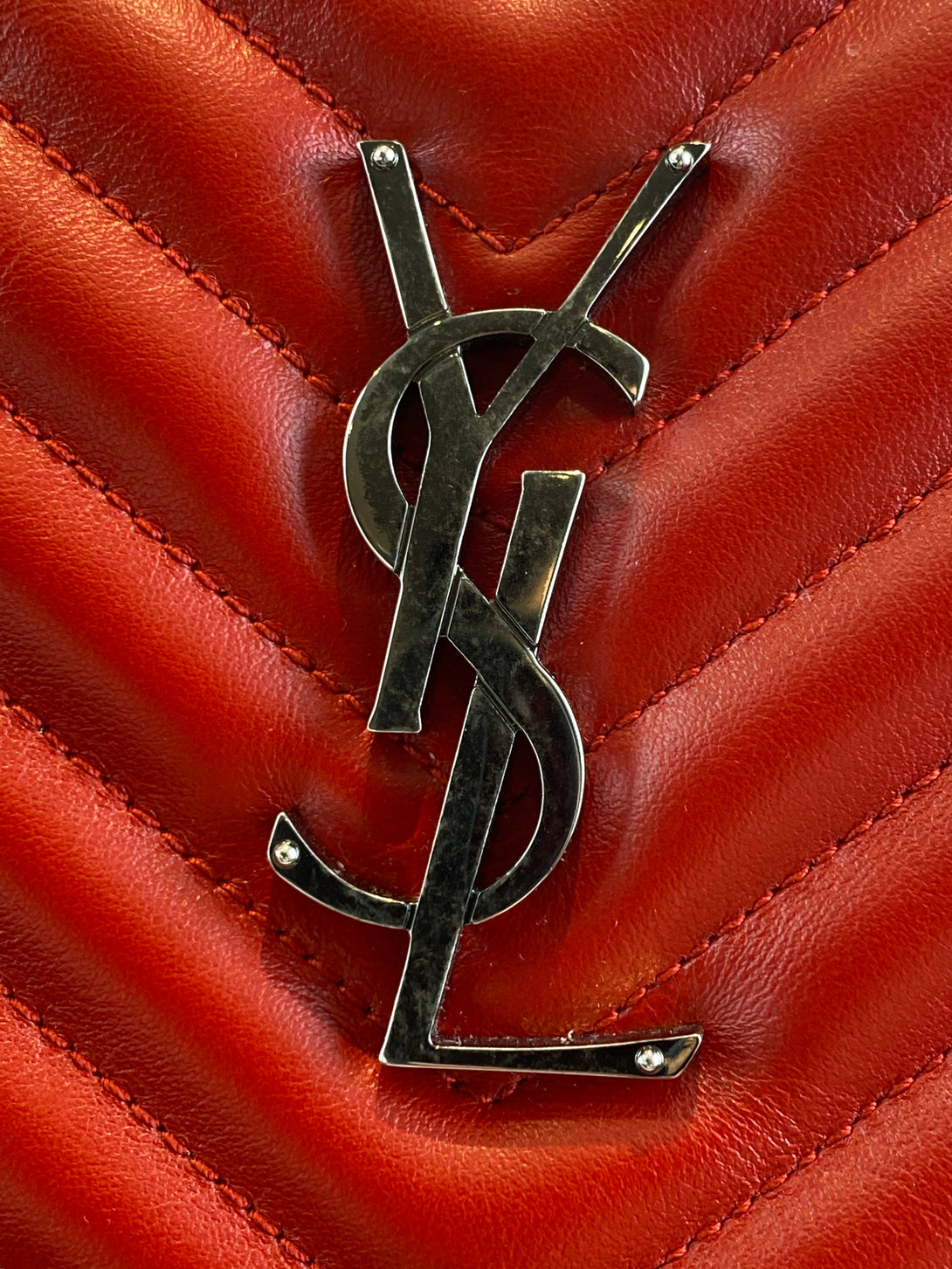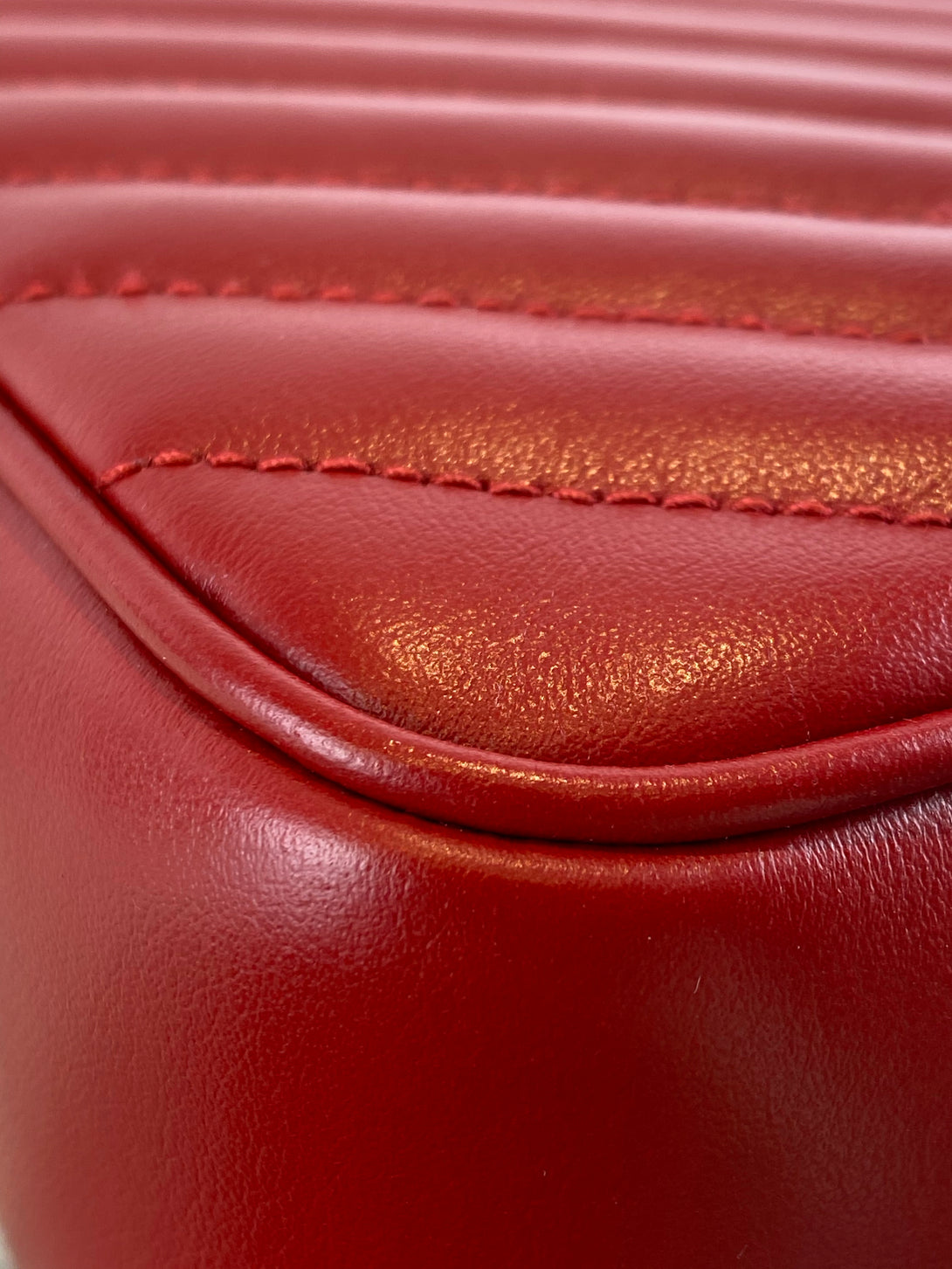 Saint Laurent Red Chevron Leather Small "Lou" Camera Crossbody - As seen on Instagram live 21/04/21