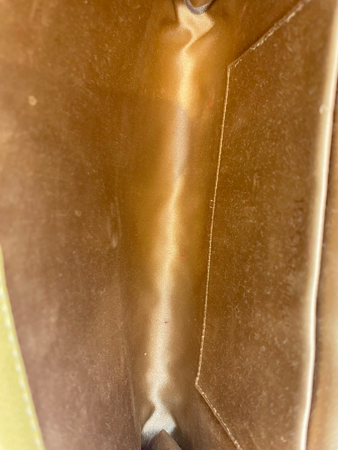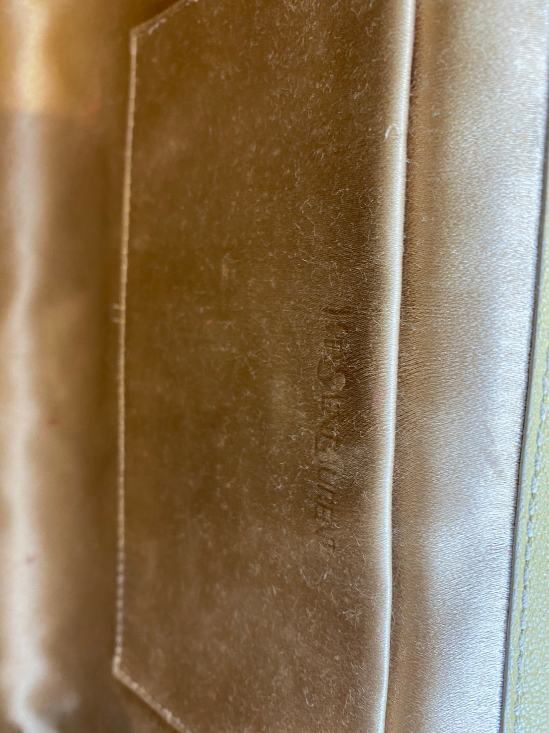 Good: Items show more prominent wear such as noticeable discoloration, stains and snags to fabric. May have worn corners and handles, tarnishing to hardware and creasing to leather. Pen or make up marks may be visible in the interior of the bag.