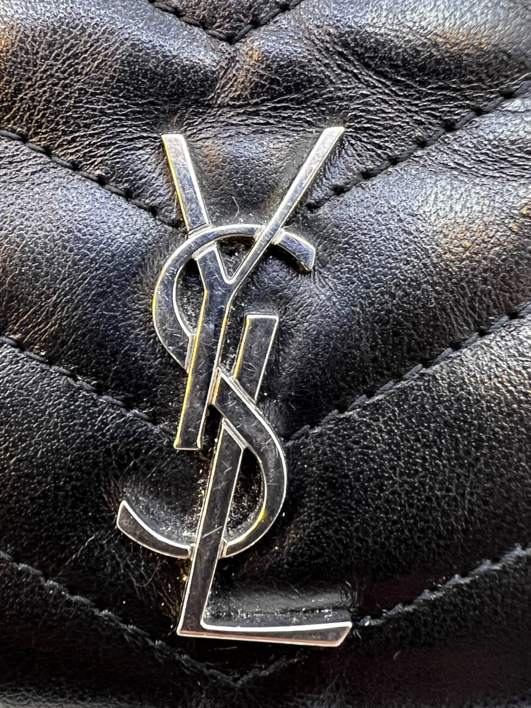 Good: Items show more prominent wear such as noticeable discoloration, stains and snags to fabric. May have worn corners and handles, tarnishing to hardware and creasing to leather. Pen or make up marks may be visible in the interior of the bag.