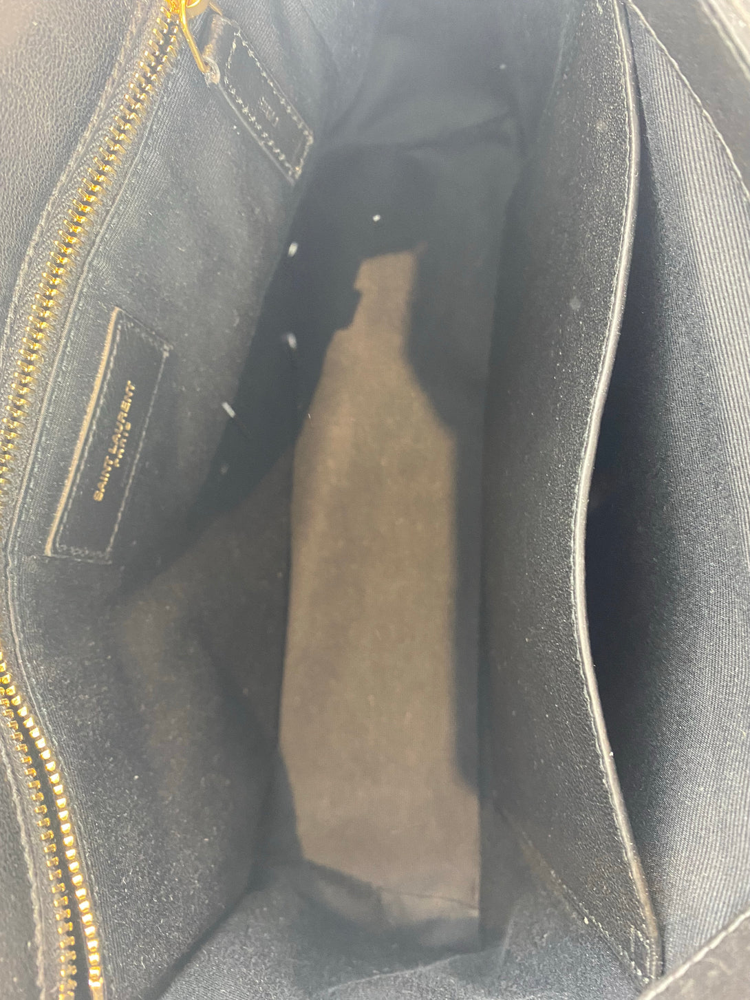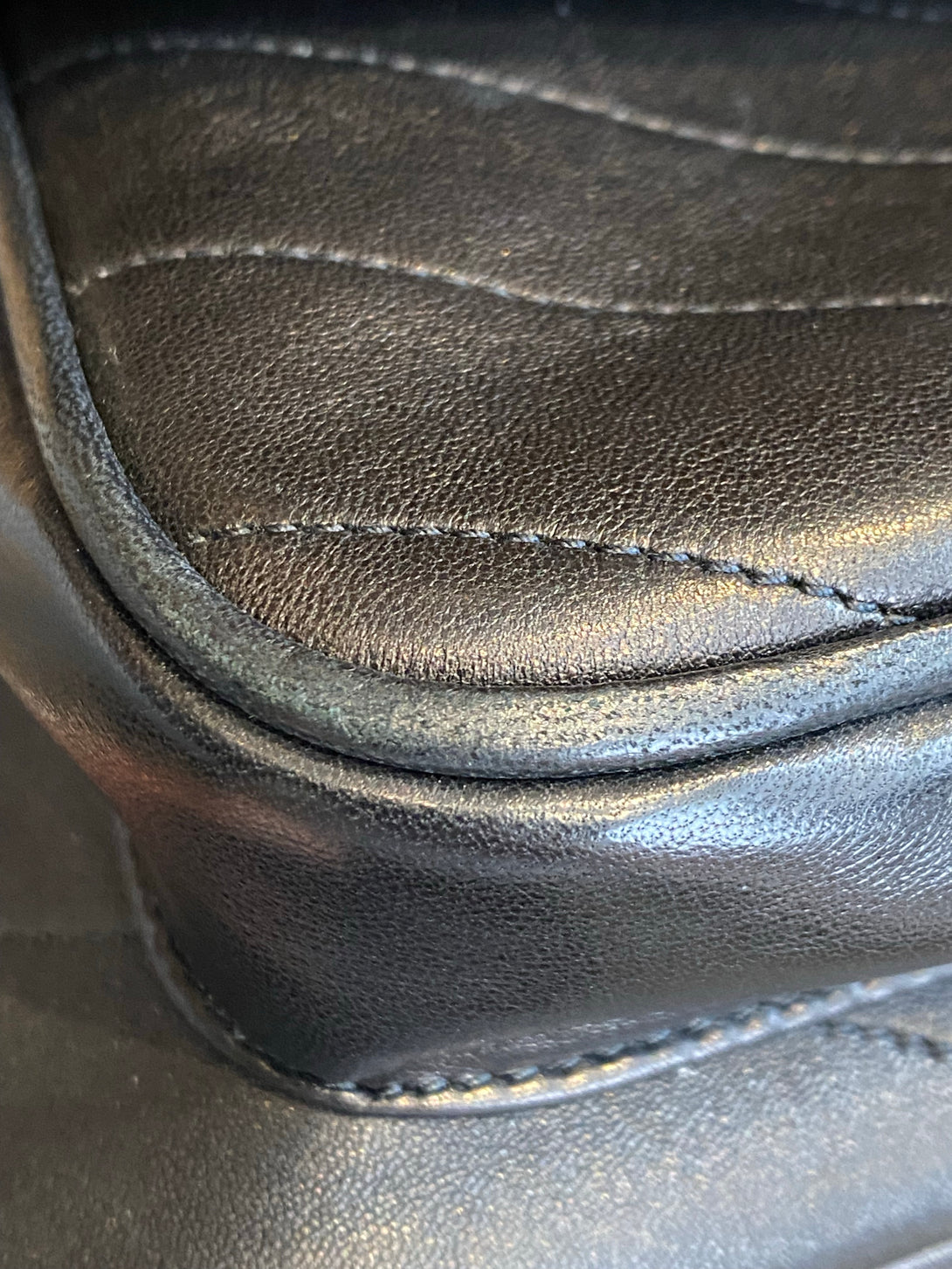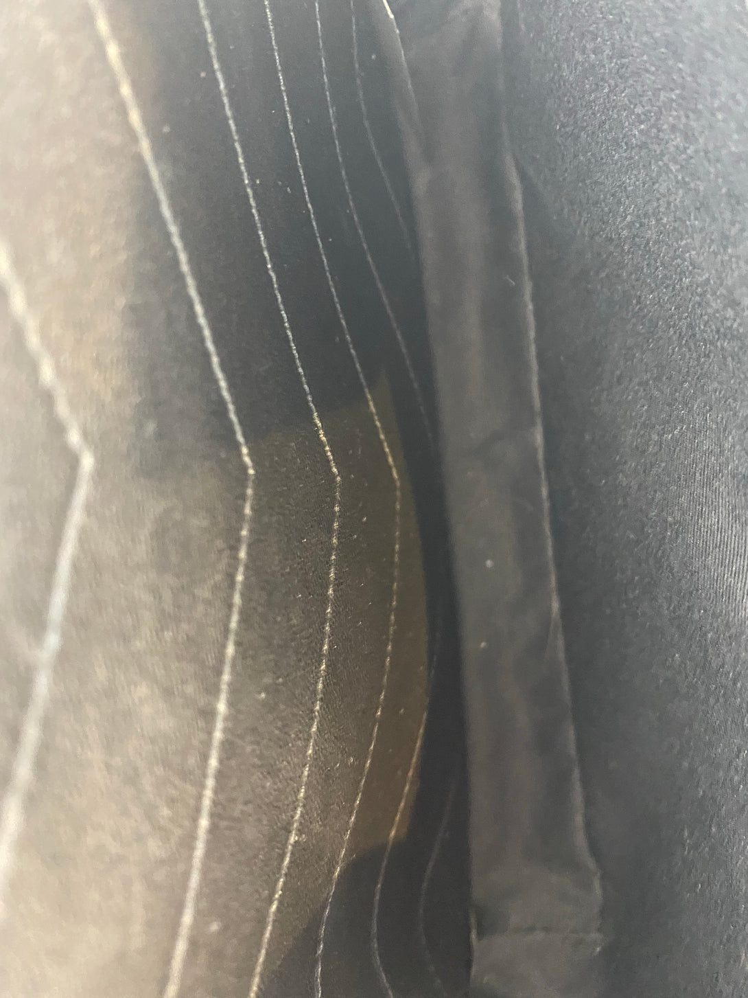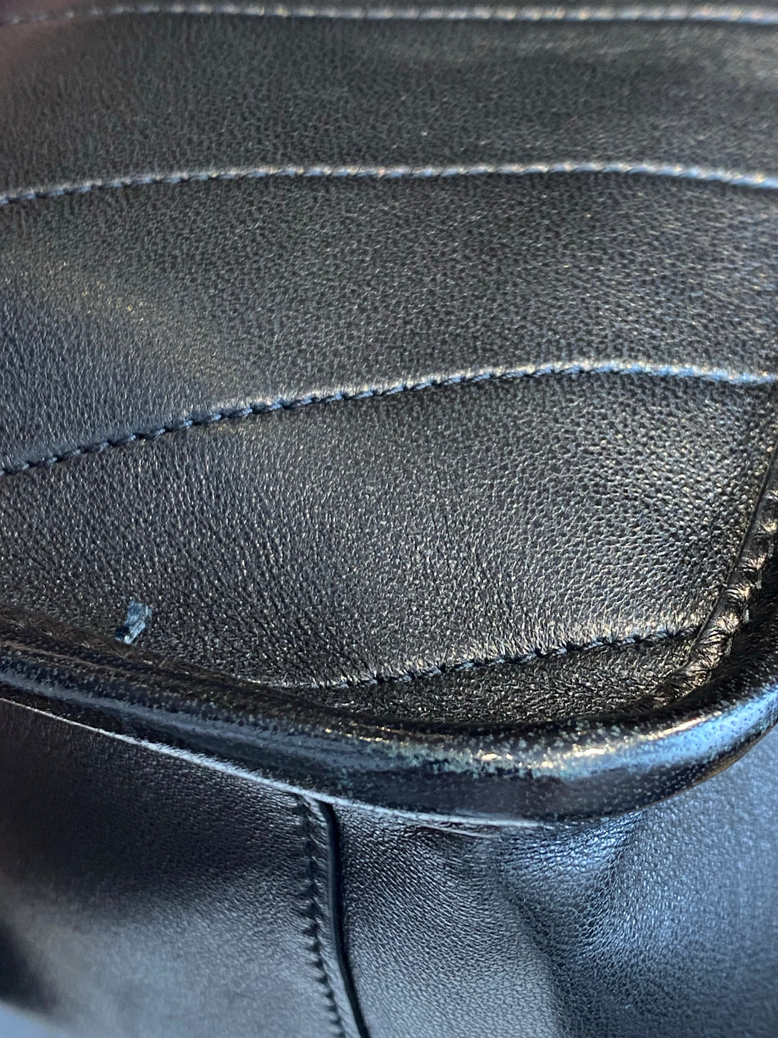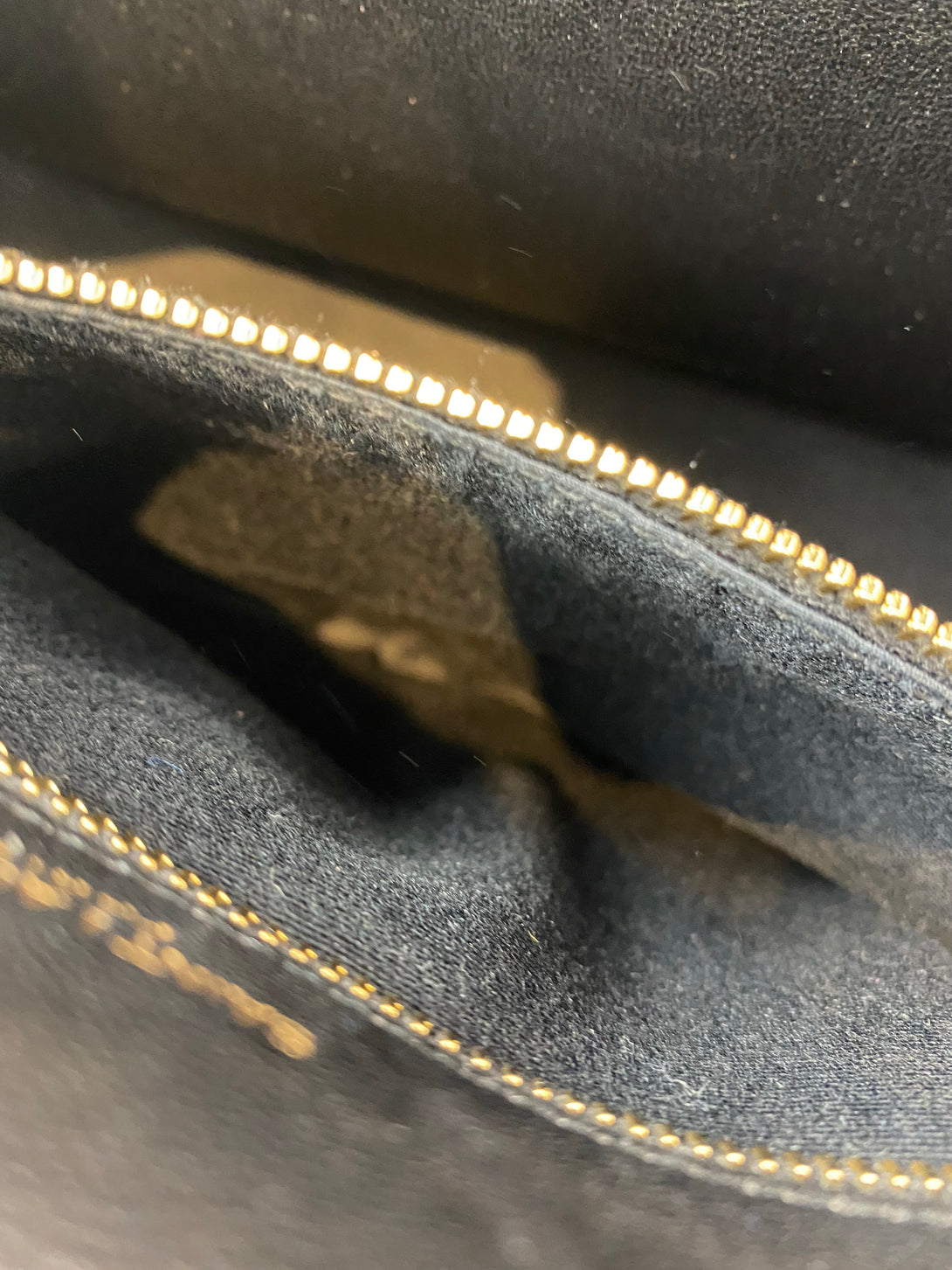Good: Items show more prominent wear such as noticeable discoloration, stains and snags to fabric. May have worn corners and handles, tarnishing to hardware and creasing to leather. Pen or make up marks may be visible in the interior of the bag.