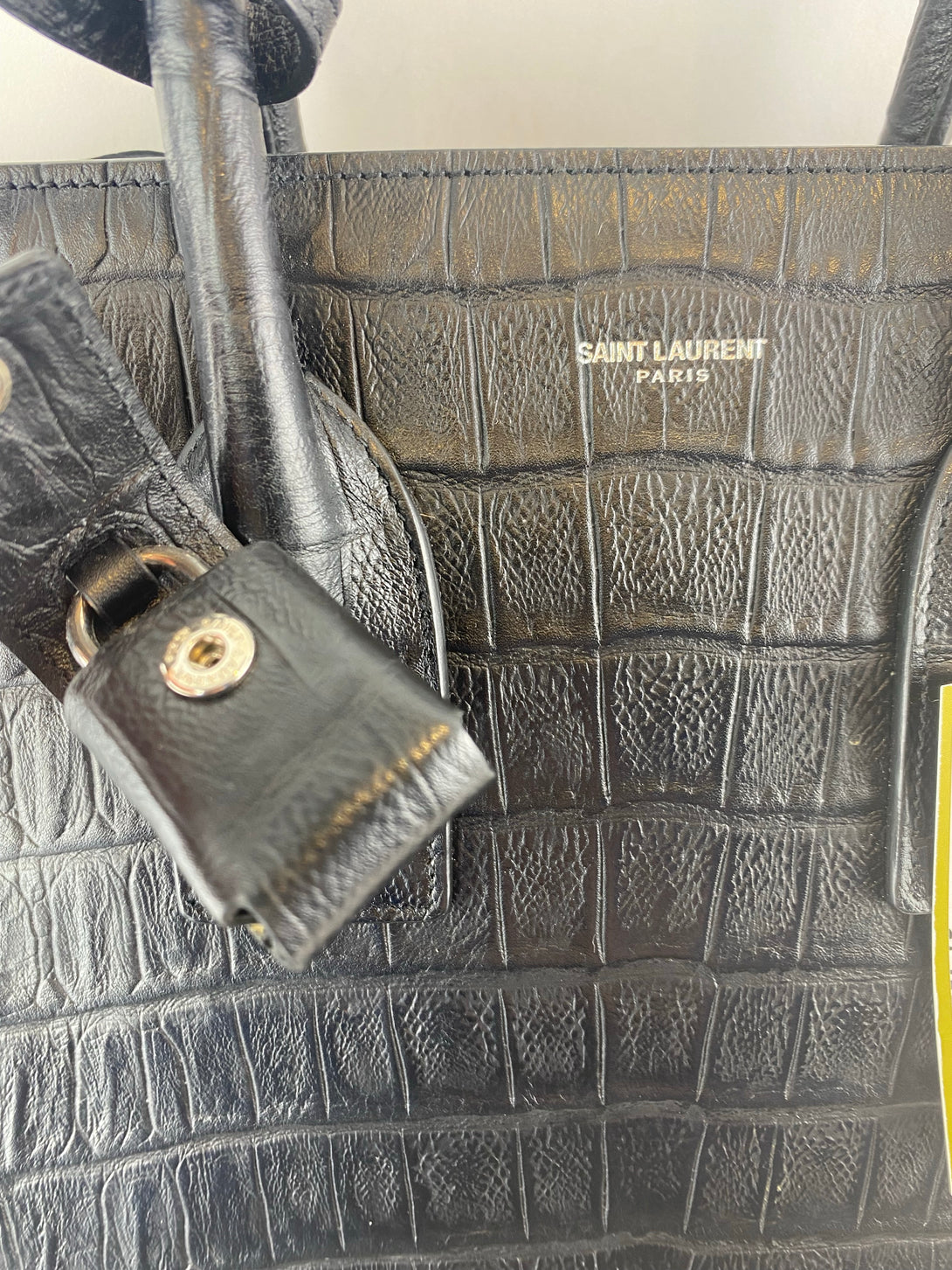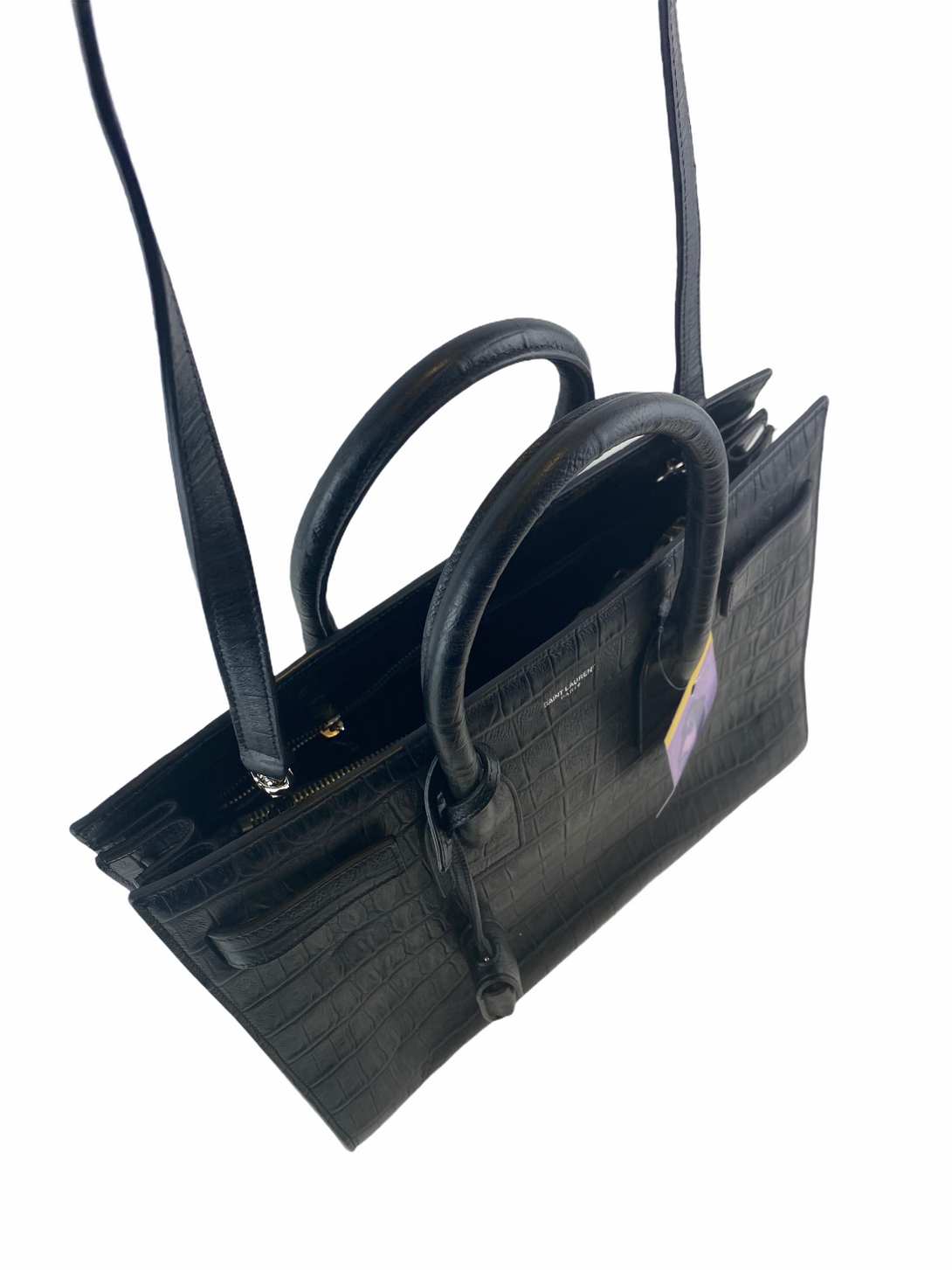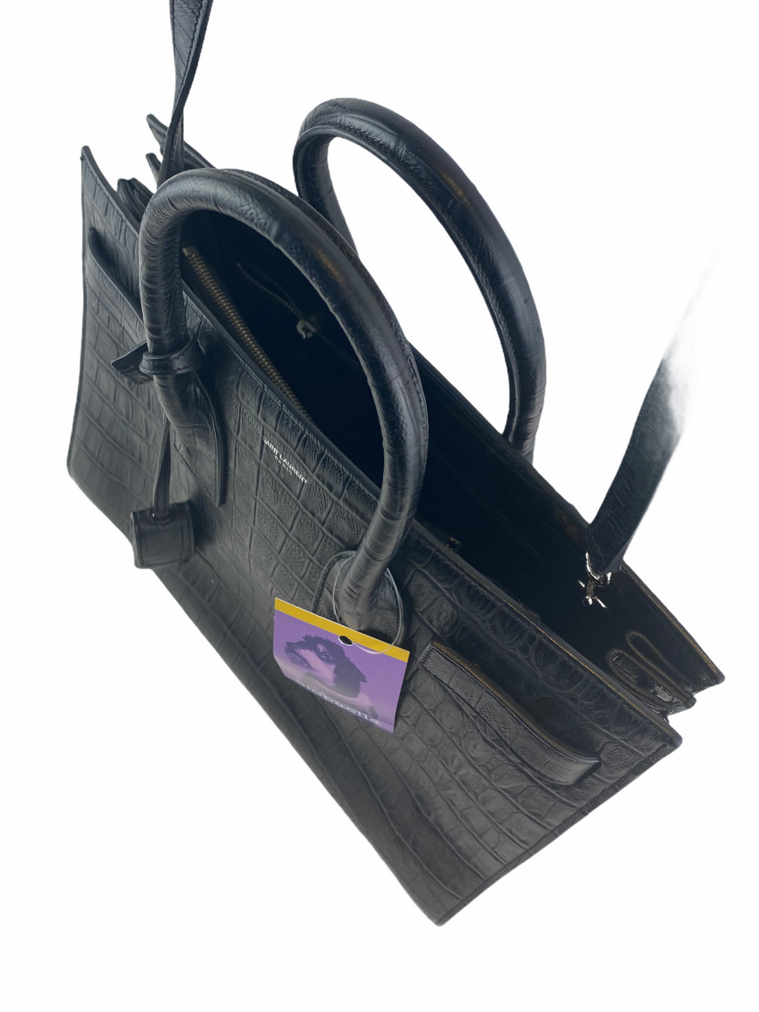 Saint Laurent Black "Croc" Embossed Leather “Sac de Jour” Handbag