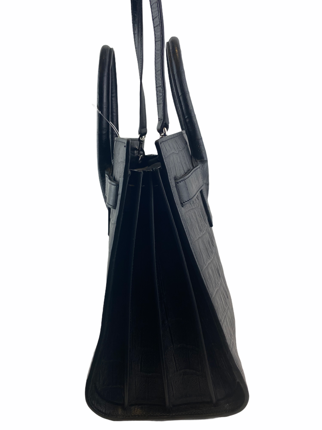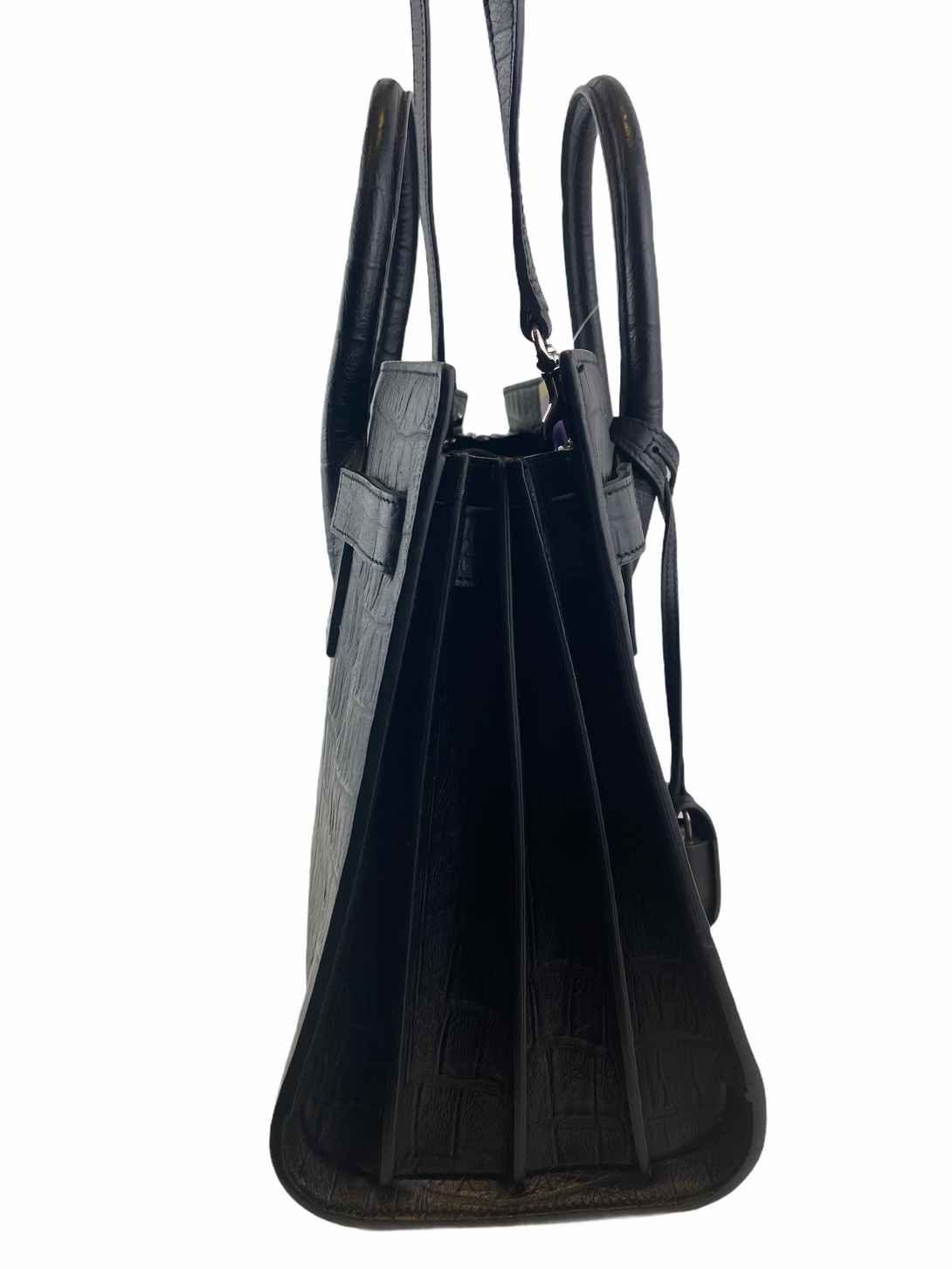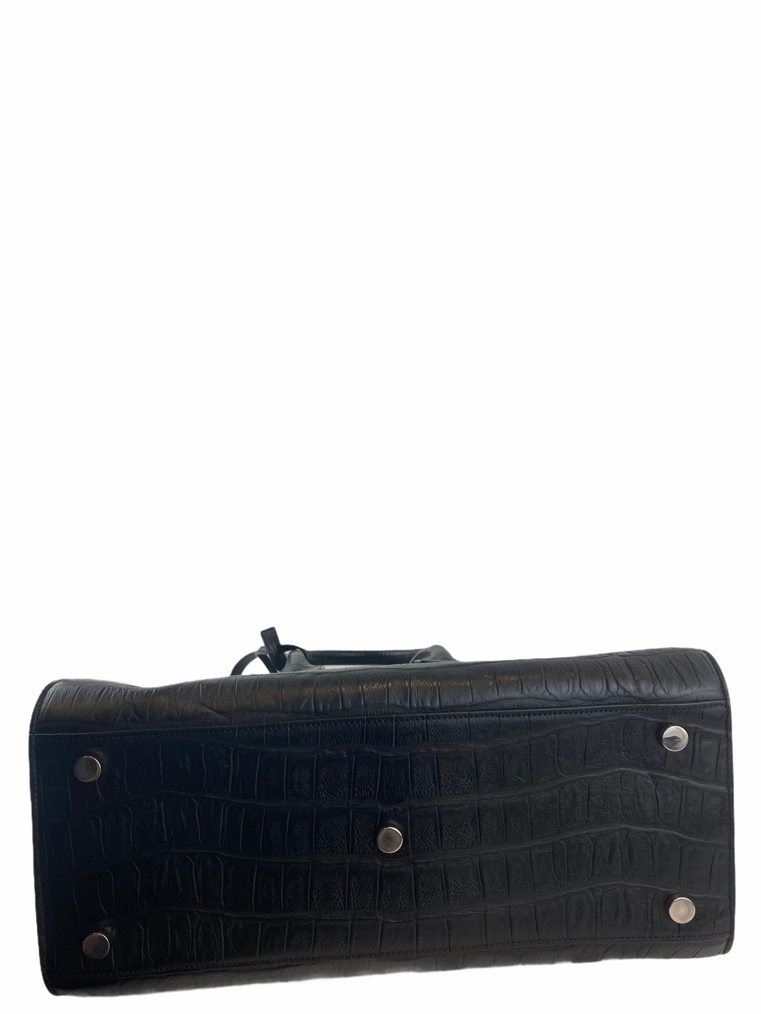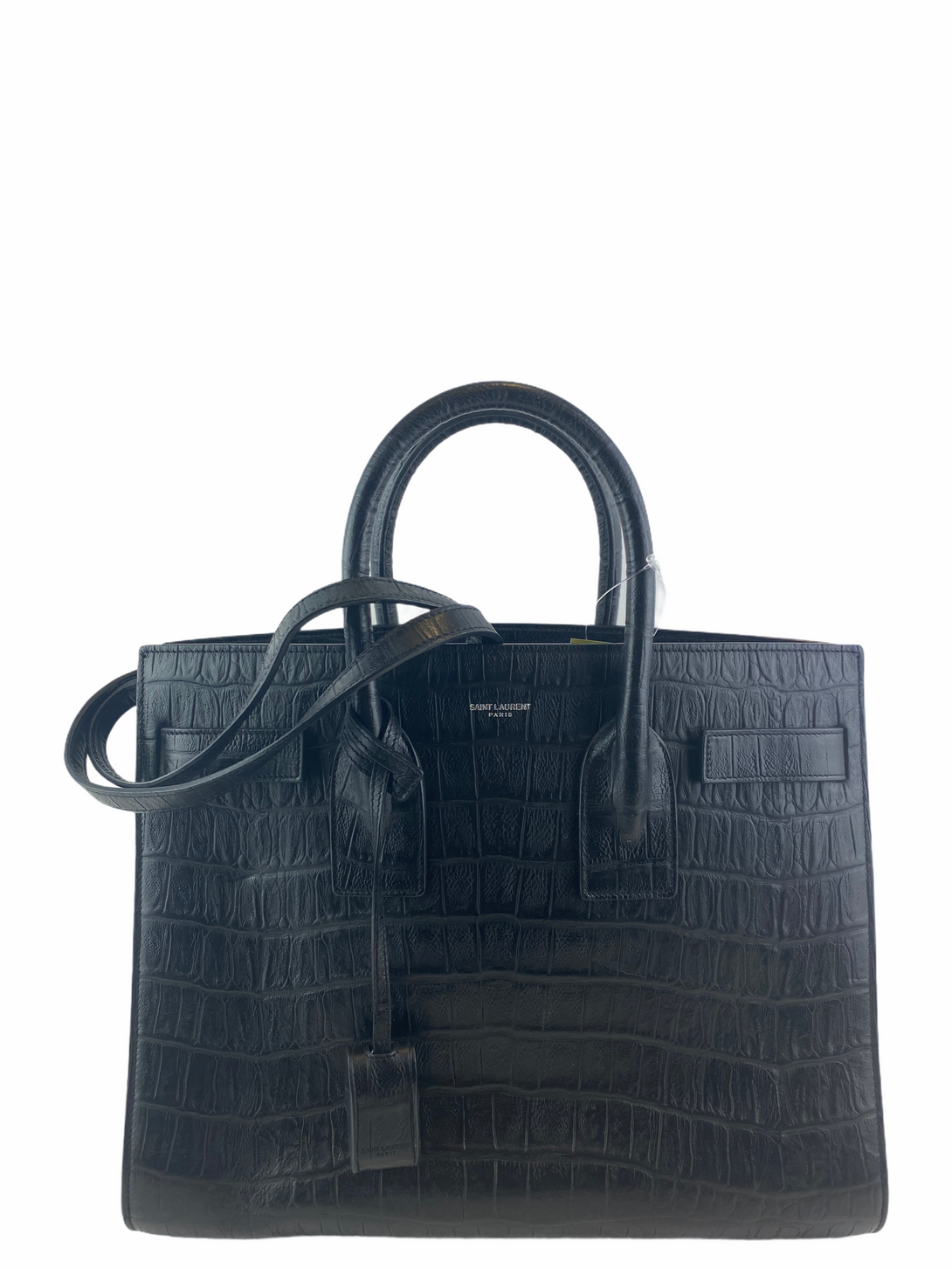 Saint Laurent Black "Croc" Embossed Leather “Sac de Jour” Handbag
