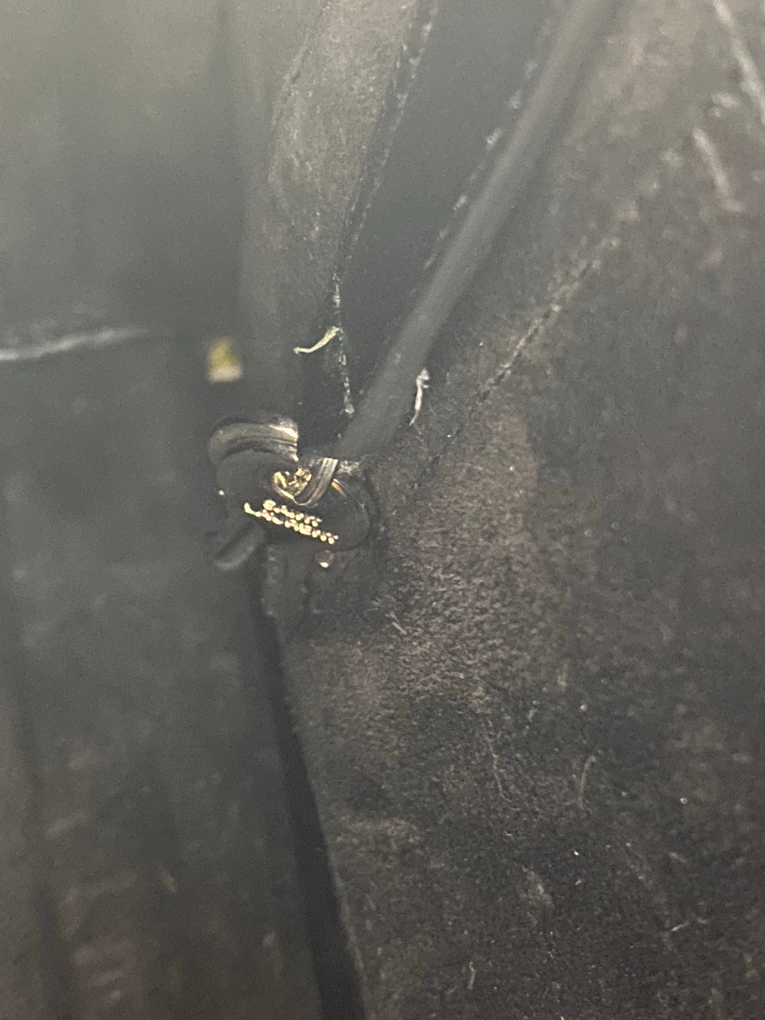 Good: Items show more prominent wear such as noticeable discoloration, stains and snags to fabric. May have worn corners and handles, tarnishing to hardware and creasing to leather. Pen or make up marks may be visible in the interior of the bag.
