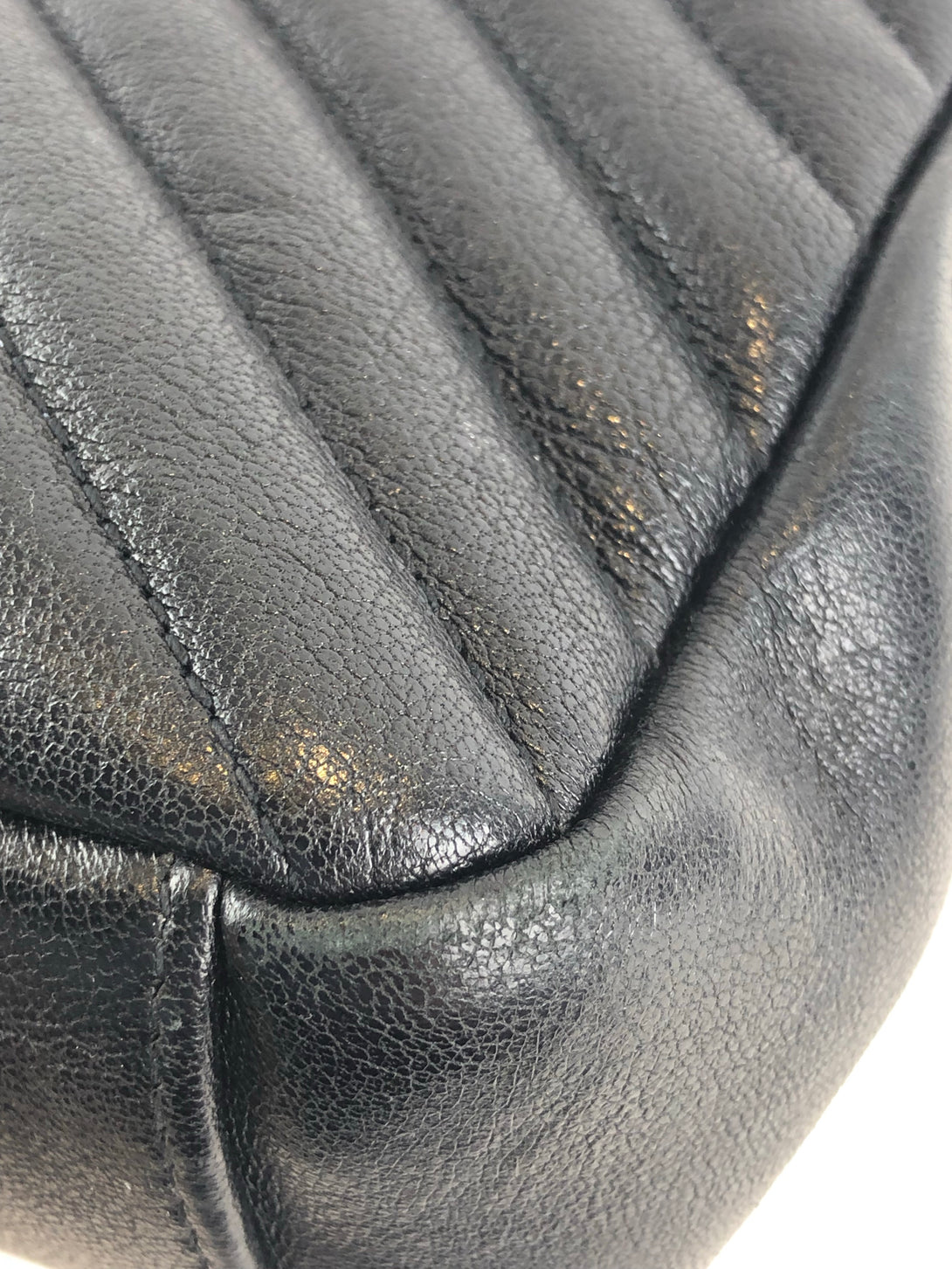 Good: Items show more prominent wear such as noticeable discoloration, stains and snags to fabric. May have worn corners and handles, tarnishing to hardware and creasing to leather. Pen or make up marks may be visible in the interior of the bag.