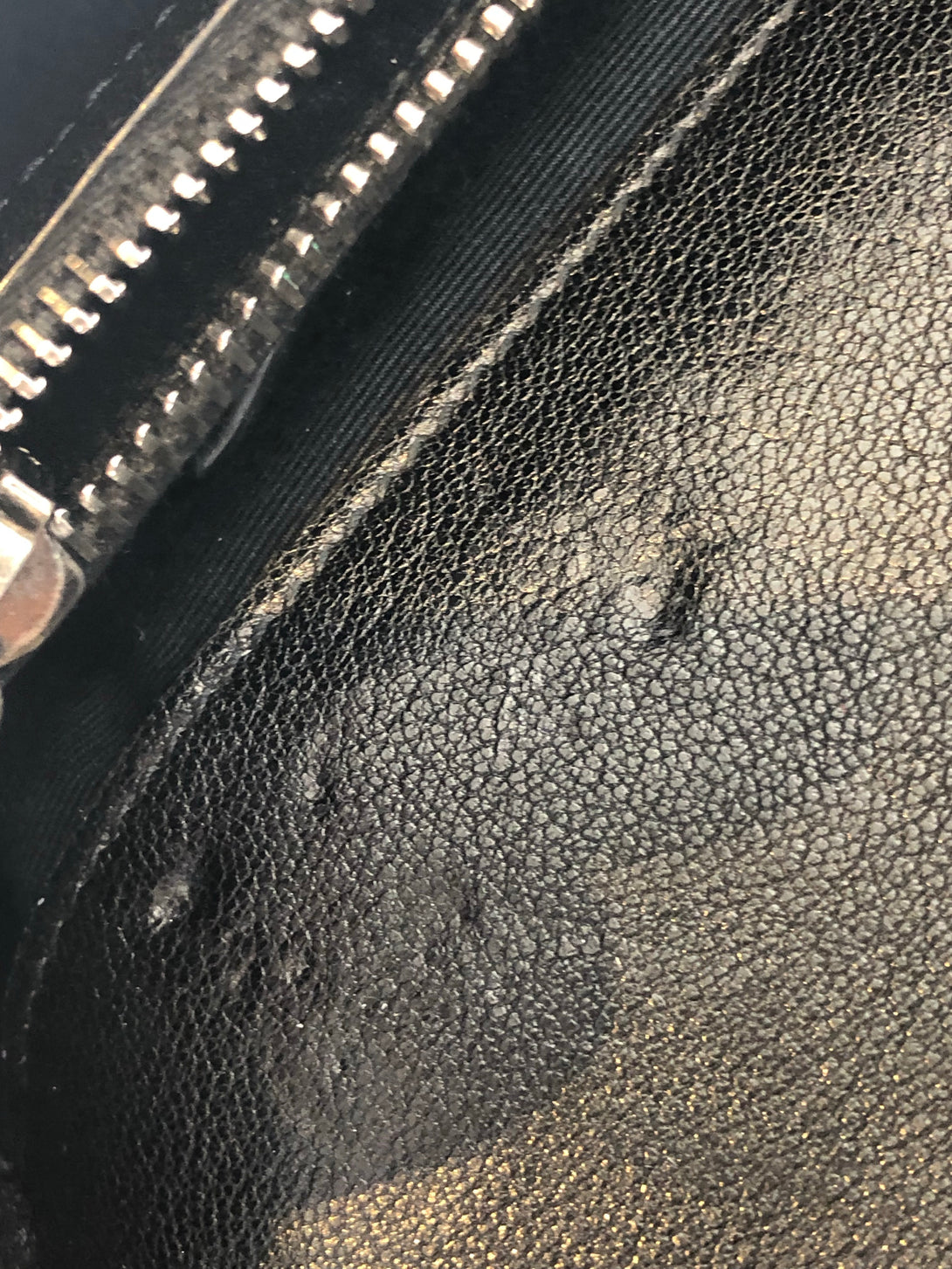 Fair: Very prominent wear, may have holes on corners, severe scuffs, piping of bag showing and pen marks to exterior. Interior may have pen or make up marks.