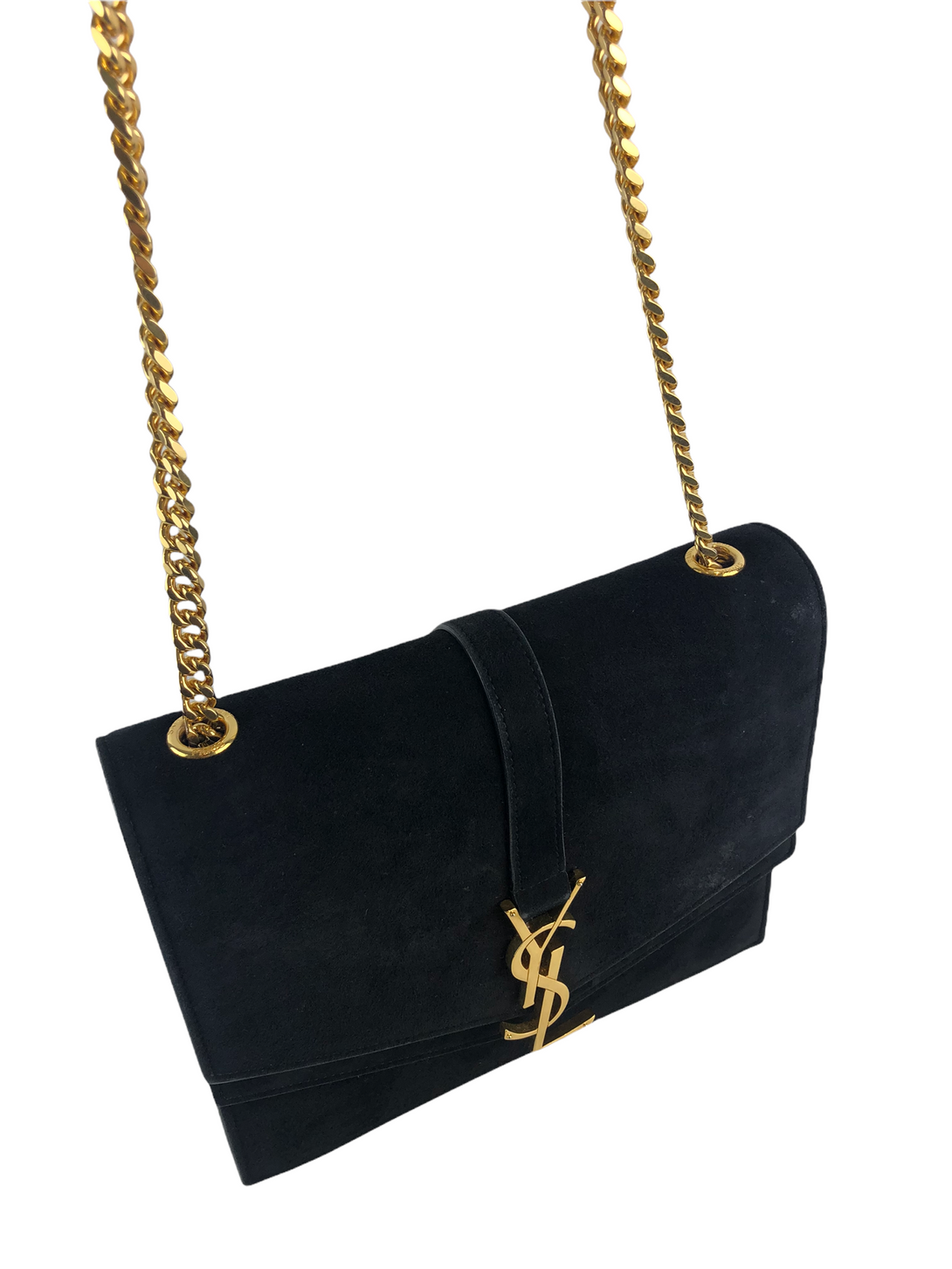 Saint Laurent Black Suede ‘Sulpice’ Chain Crossbody