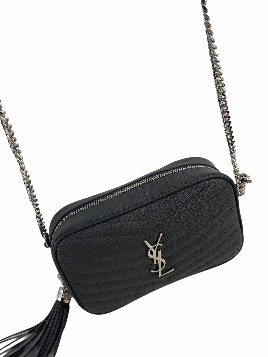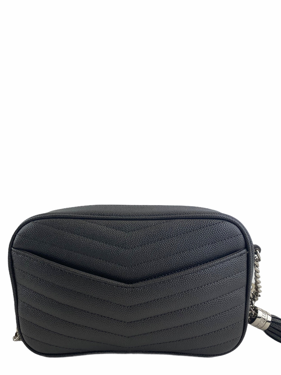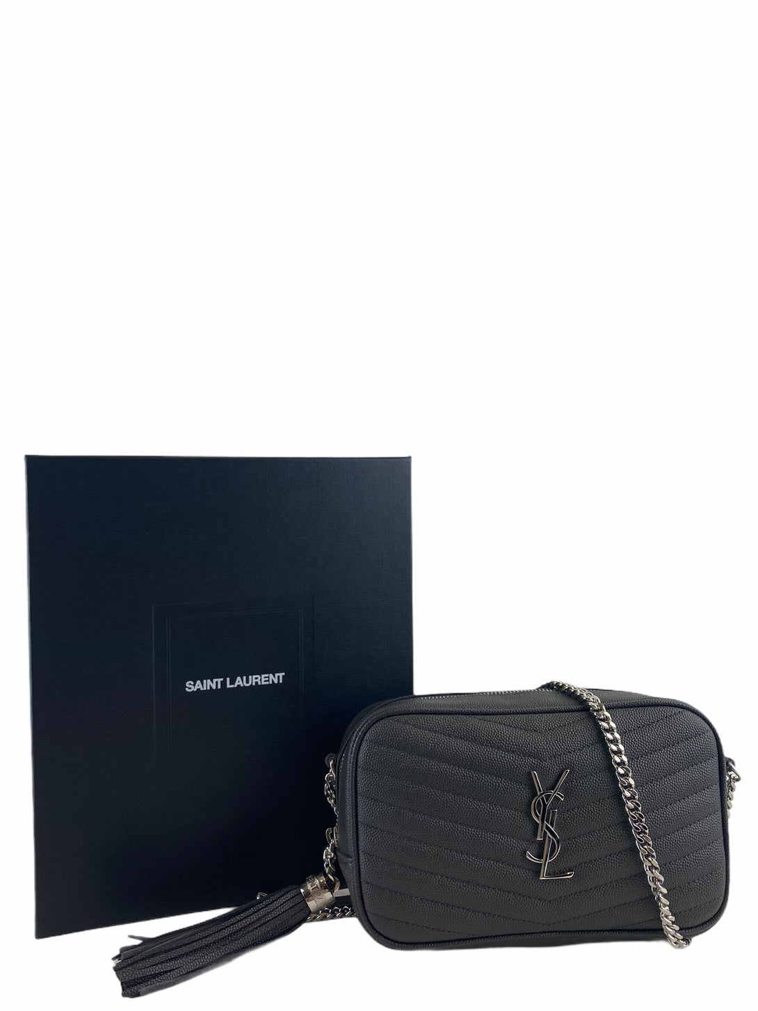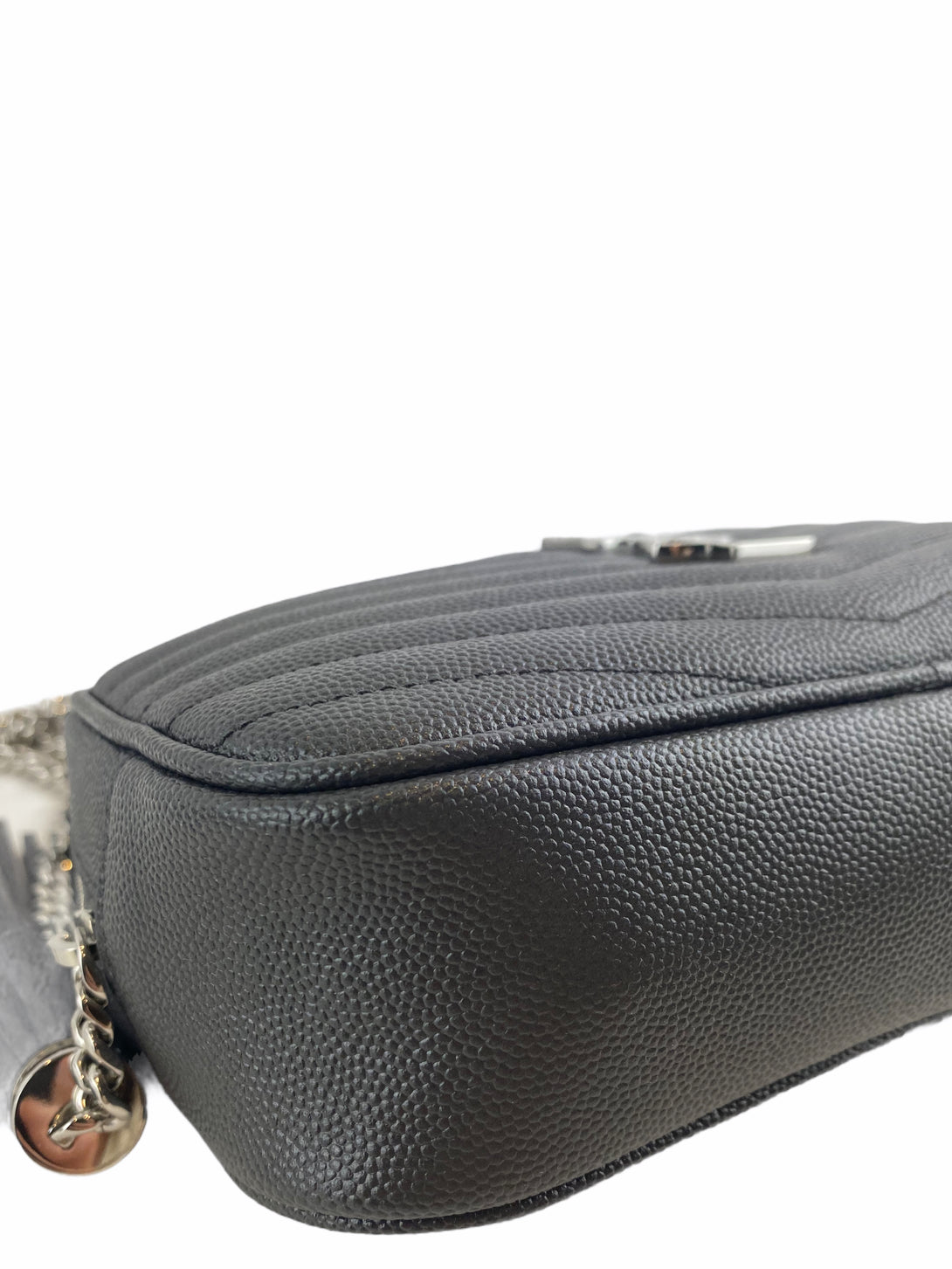 Saint Laurent Grey Matelasse Chervon Leather “Lou Camera” Bag