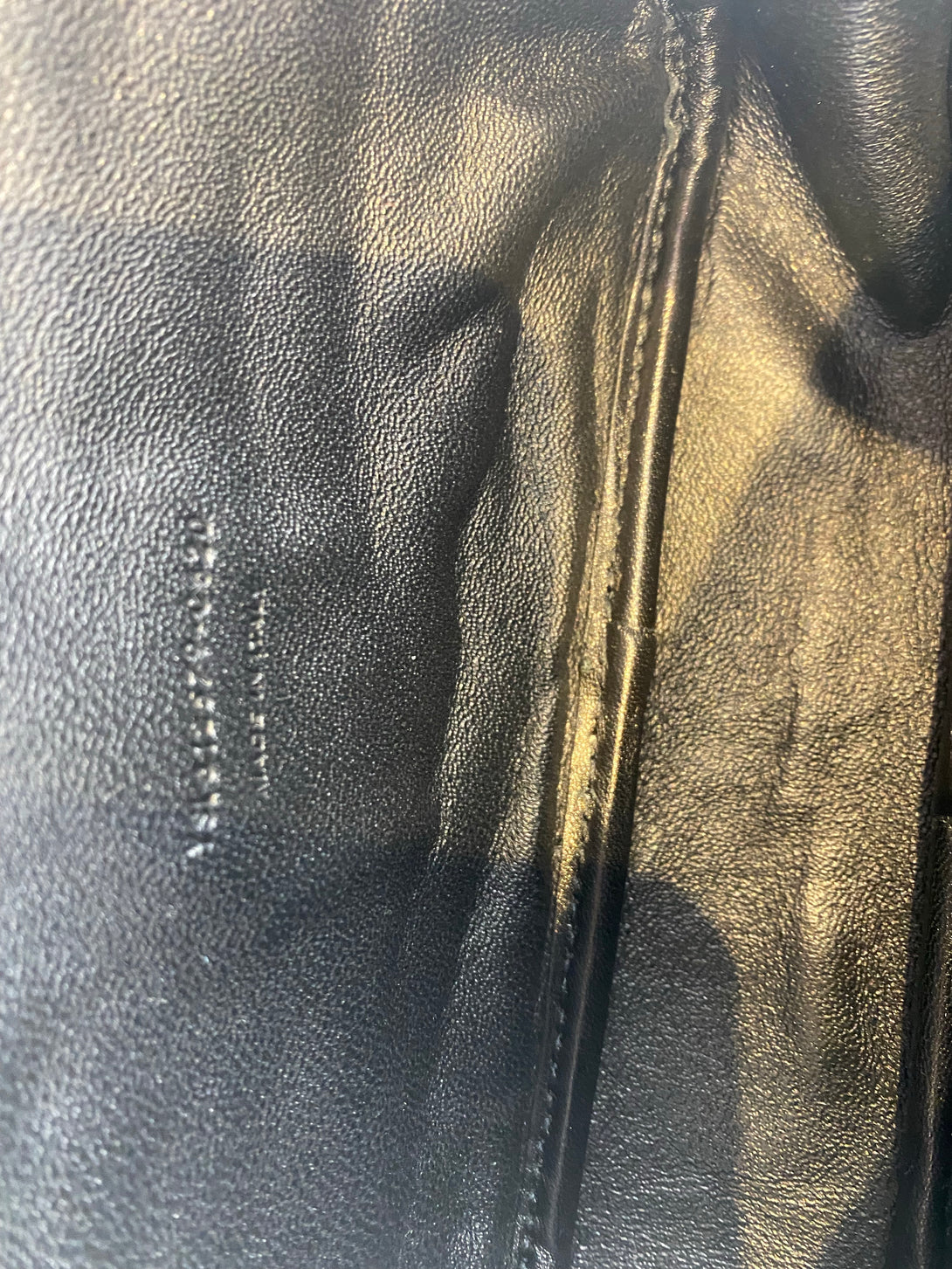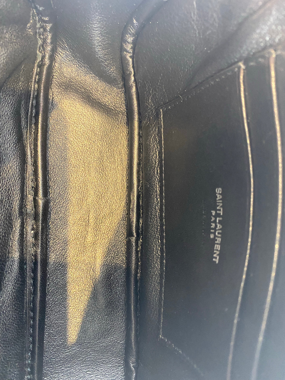 Good: Items show more prominent wear such as noticeable discoloration, stains and snags to fabric. May have worn corners and handles, tarnishing to hardware and creasing to leather. Pen or make up marks may be visible in the interior of the bag.
