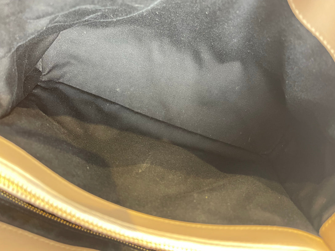 Good: Items show more prominent wear such as noticeable discoloration, stains and snags to fabric. May have worn corners and handles, tarnishing to hardware and creasing to leather. Pen or make up marks may be visible in the interior of the bag.