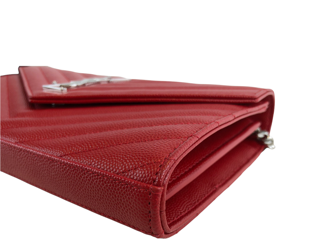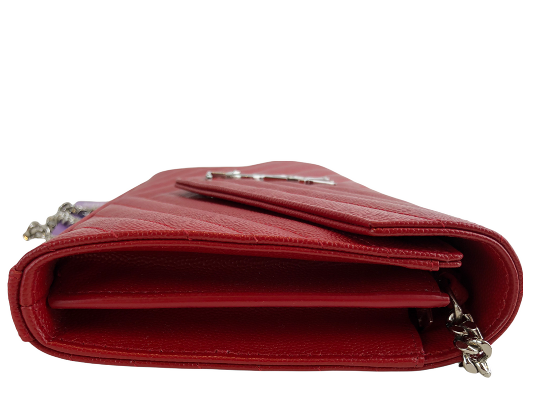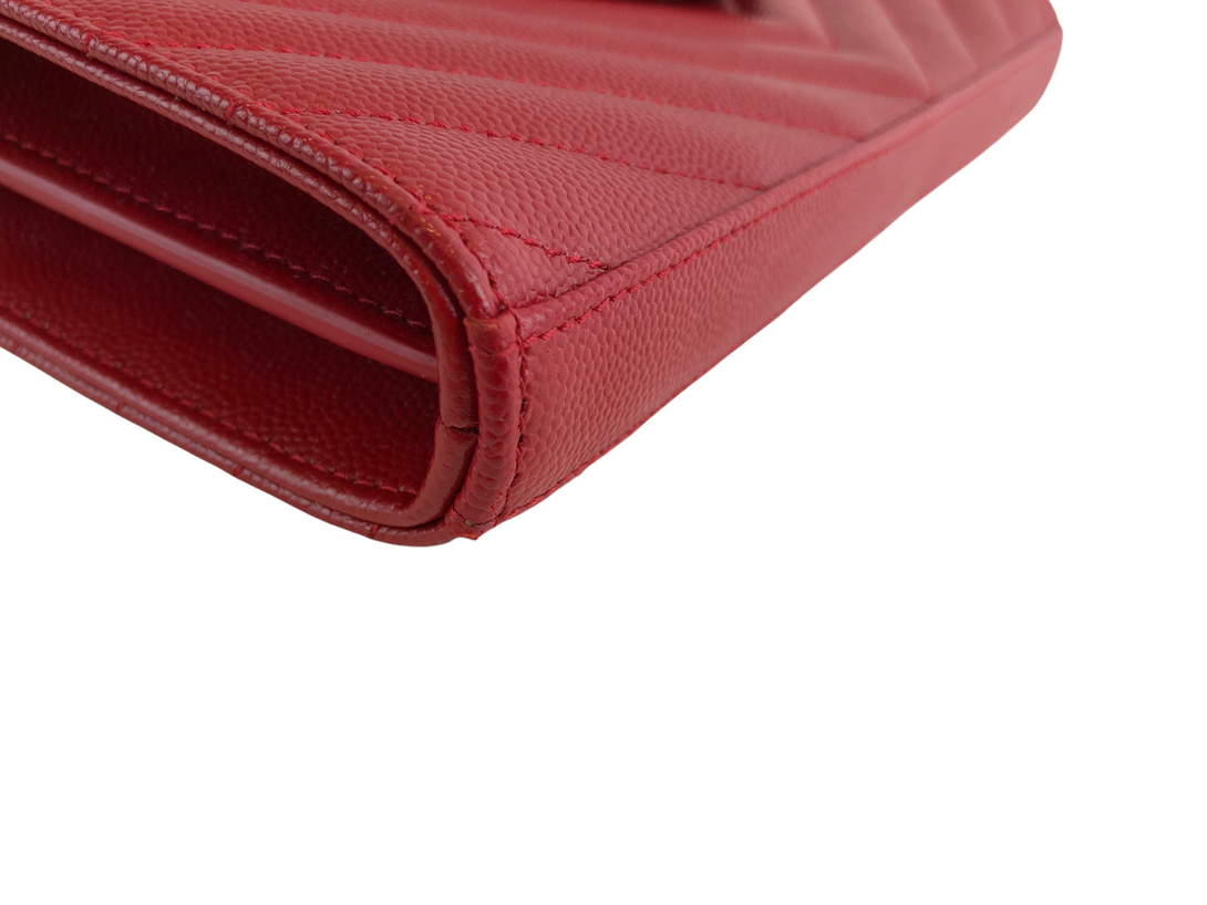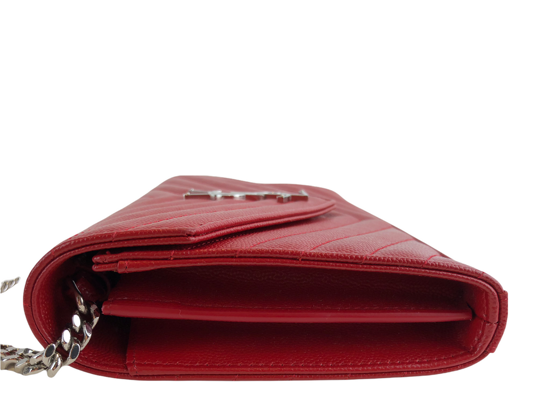 Saint Laurent Red Chevron Leather Wallet on Chain
