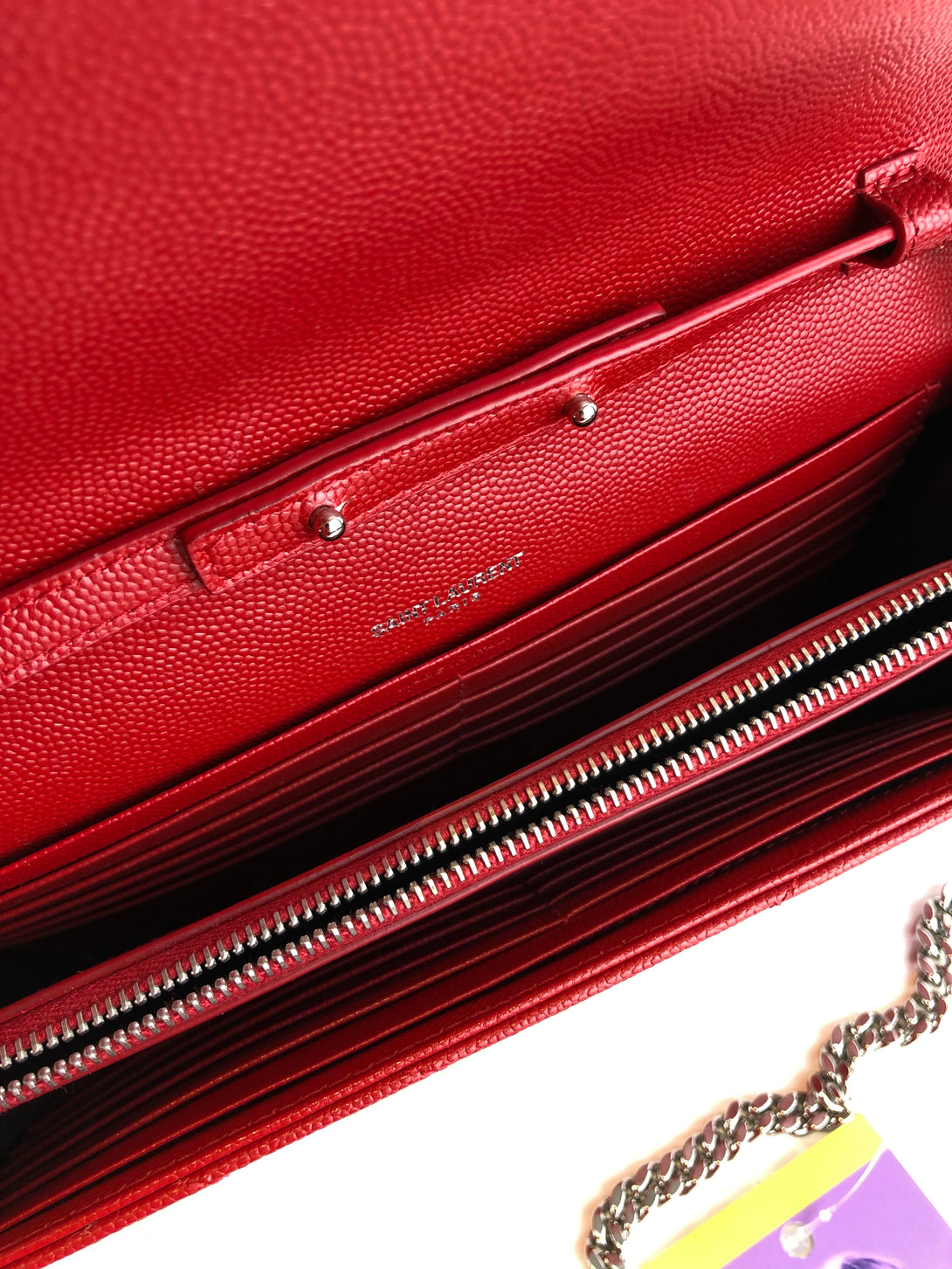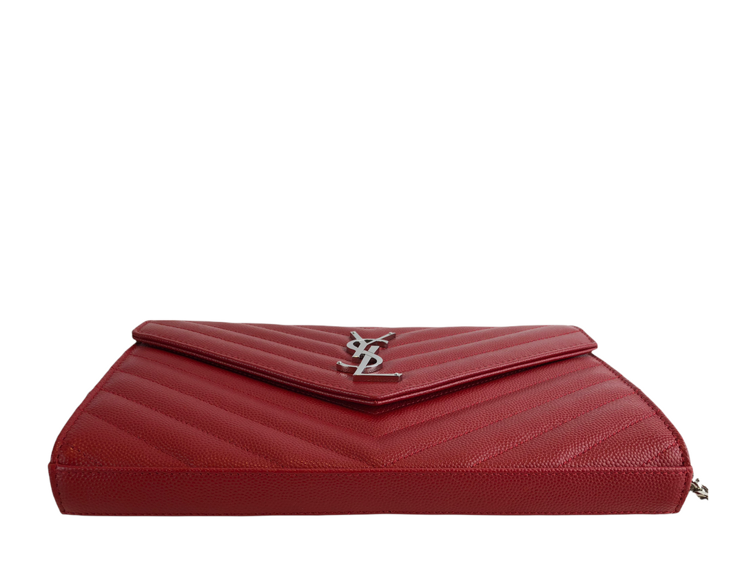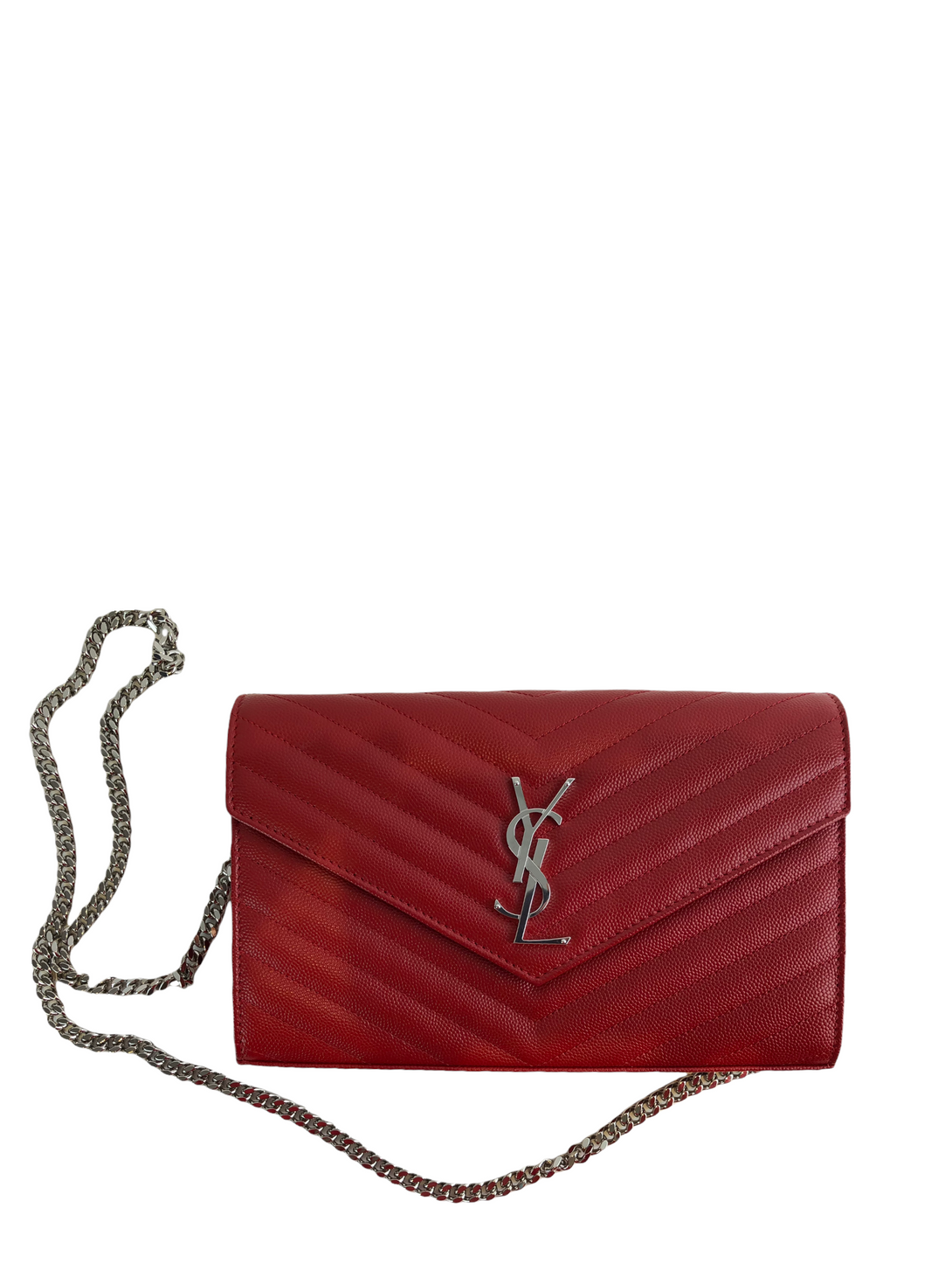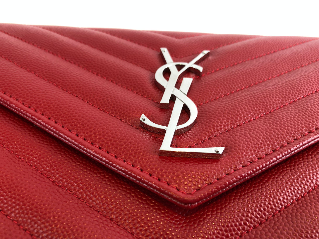Saint Laurent Red Chevron Leather Wallet on Chain