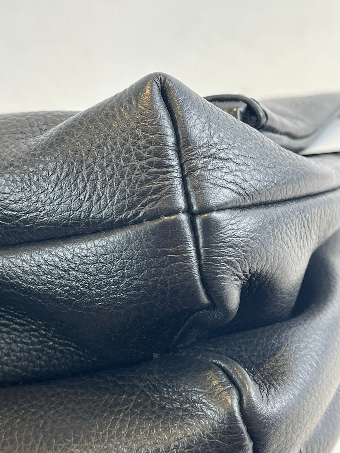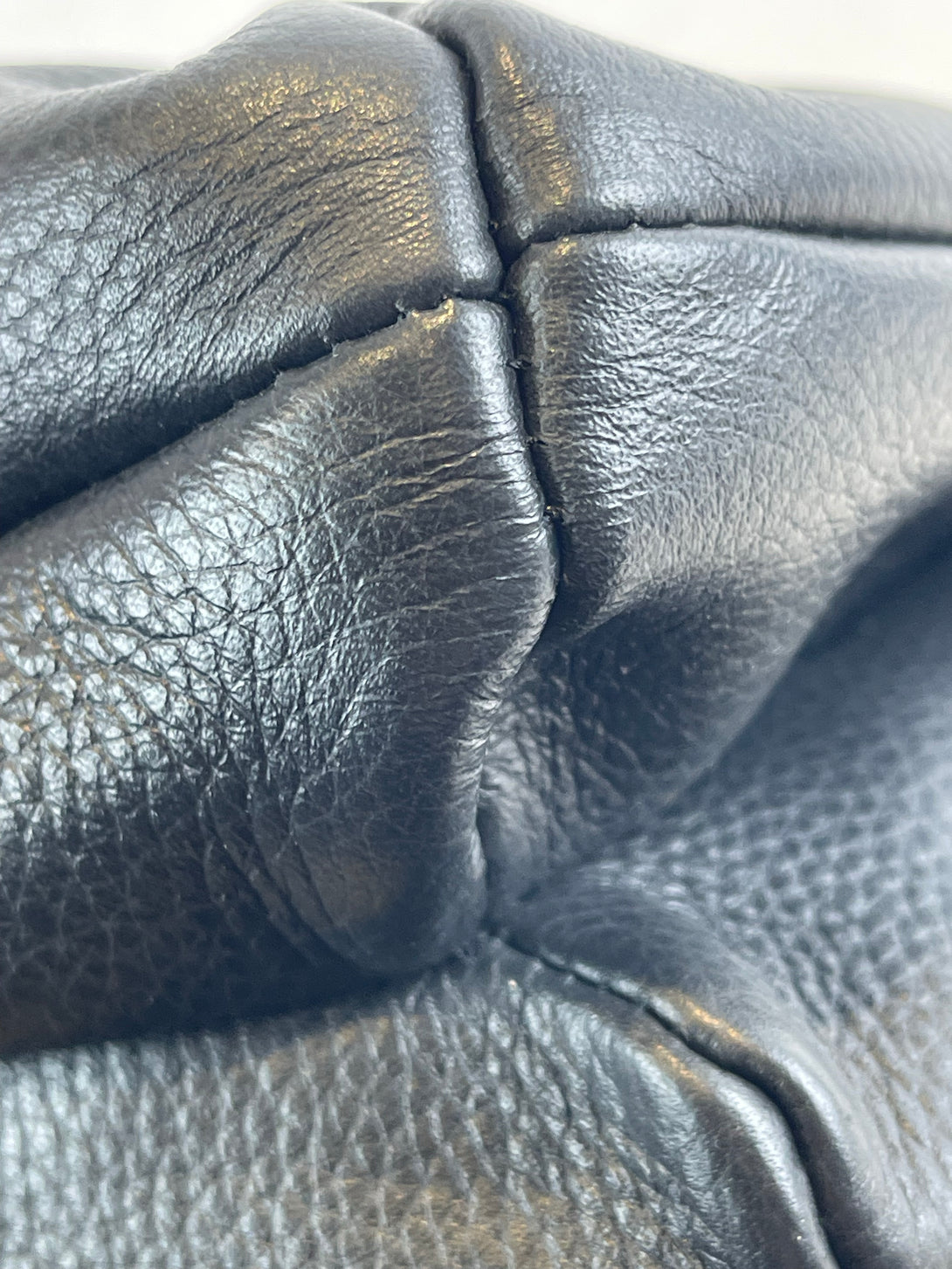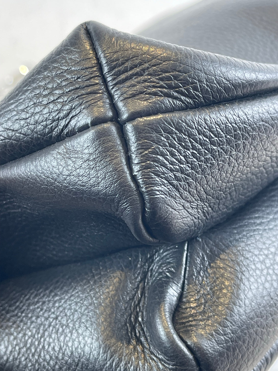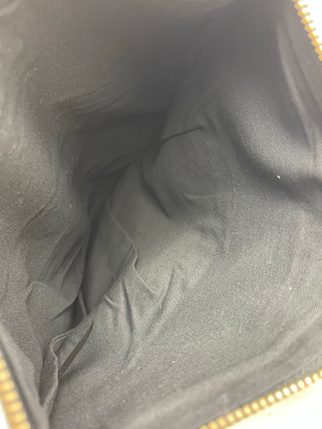 Good: Items show more prominent wear such as noticeable discoloration, stains and snags to fabric. May have worn corners and handles, tarnishing to hardware and creasing to leather. Pen or make up marks may be visible in the interior of the bag.